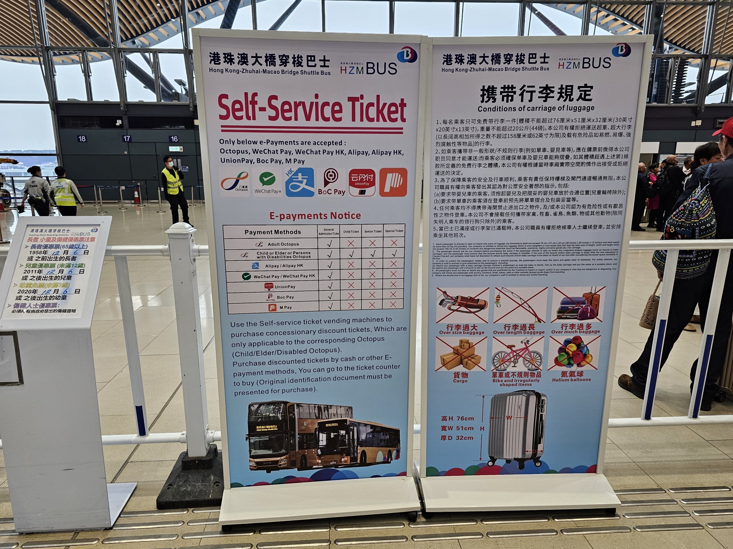- Göçmenlik kontrolünden geçtikten sonra bir otomatta - nakit, Octopus veya Macau Pass ile ve WeChat, M Pay, Alipay, Union Pass mobil uygulamaları aracılığıyla ödeme yapılabilir