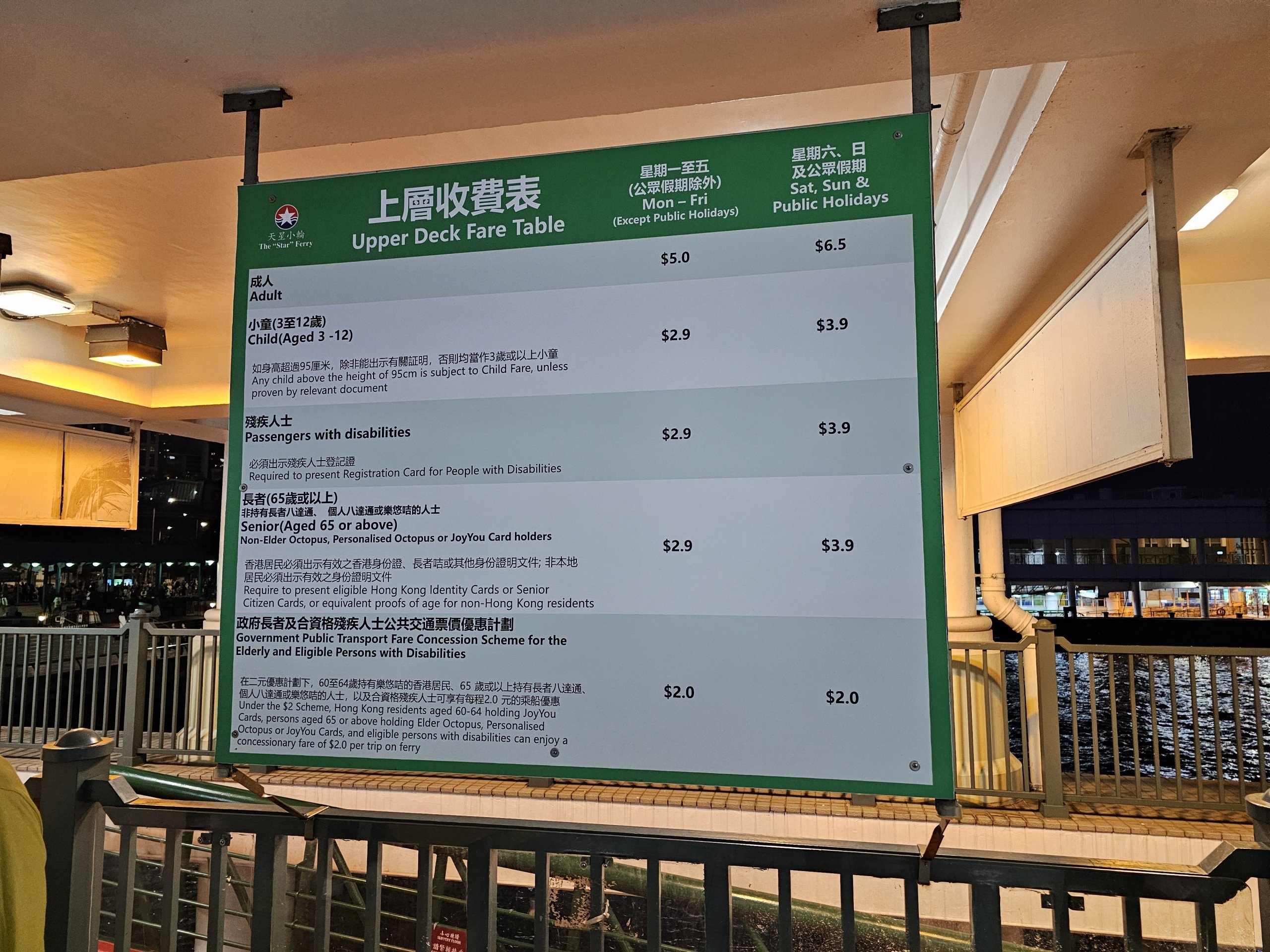 Her zaman ilgili durak için zaman çizelgesinde gösterilen tutarı ödersiniz. Bir sonraki durakta inmeniz ya da Hong Kong'un diğer tarafındaki terminale ulaşmanız fark etmez.