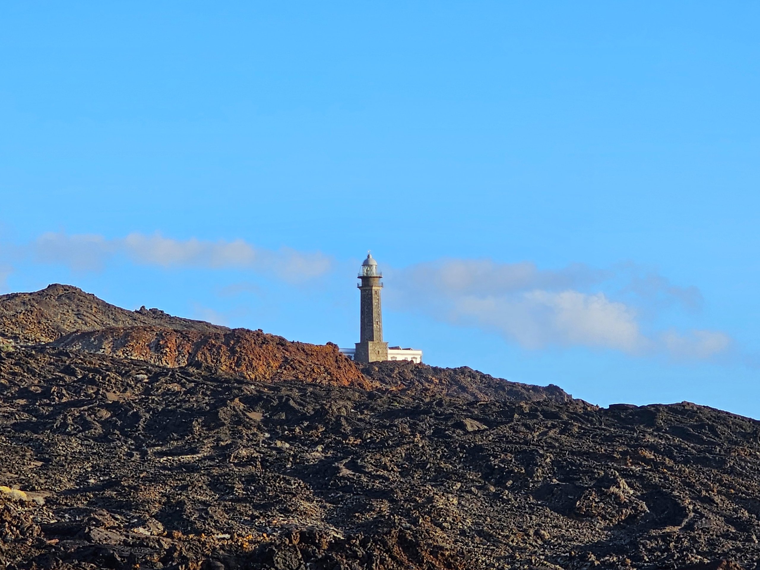 Güzel bir şekilde korunan deniz feneri, çoğunlukla volkanik lav kalıntılarından oluşan ve dünya yüzeyinden ziyade bir ay manzarasını andıran kesinlikle çorak bir manzarada duruyor.