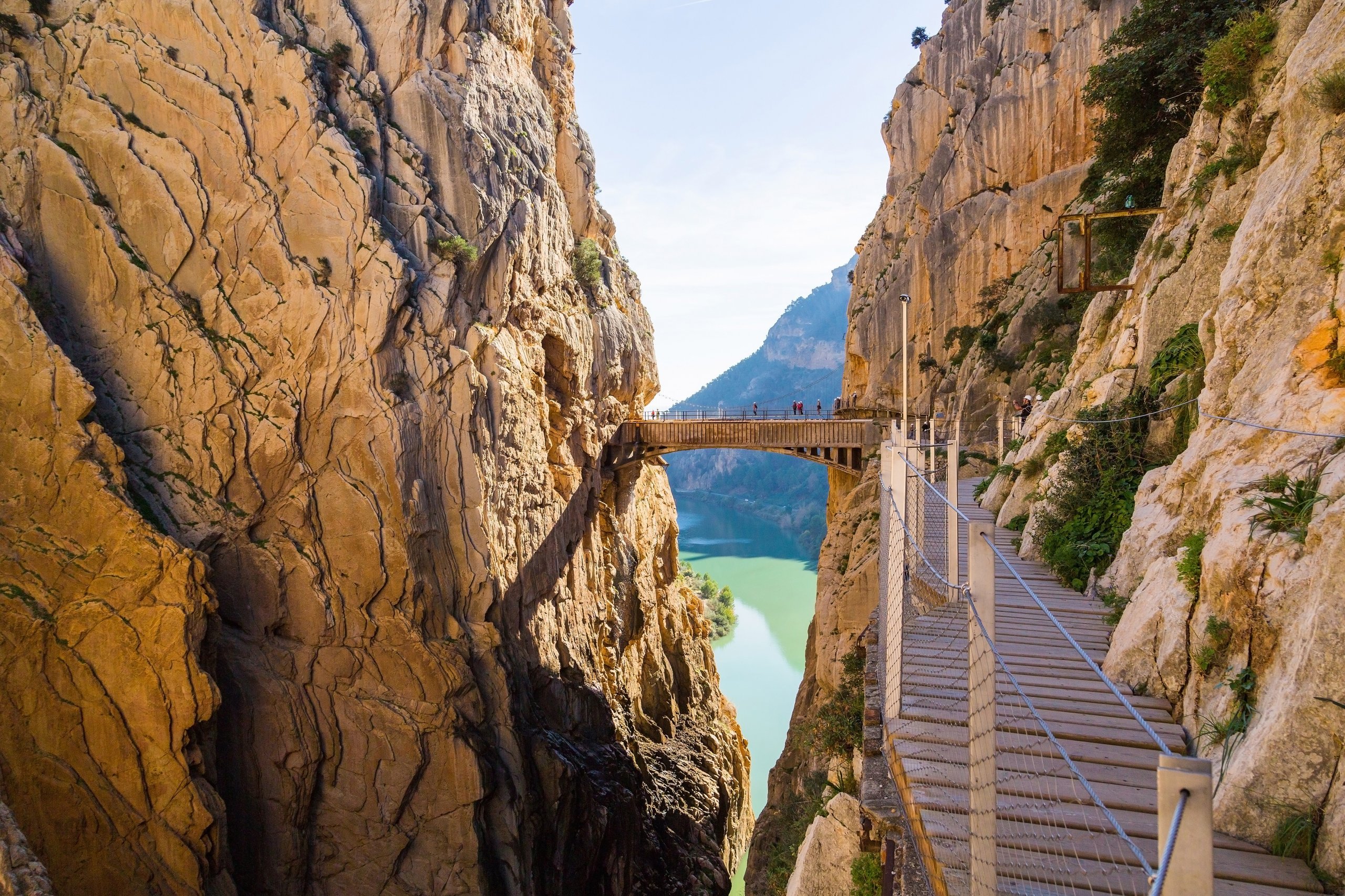 Malaga yakınlarındaki dünyaca ünlü bir diğer cazibe merkezi de muhteşem Caminito del Rey, yani Kraliyet Yolu'dur. Kelimenin tam anlamıyla 300 metre yüksekliğindeki kaya duvarlarına tutturulmuş patika, dar geçitleri keser, derin vadiler üzerinde kemerler oluşturur ve pastoral ormanlardan geçer.