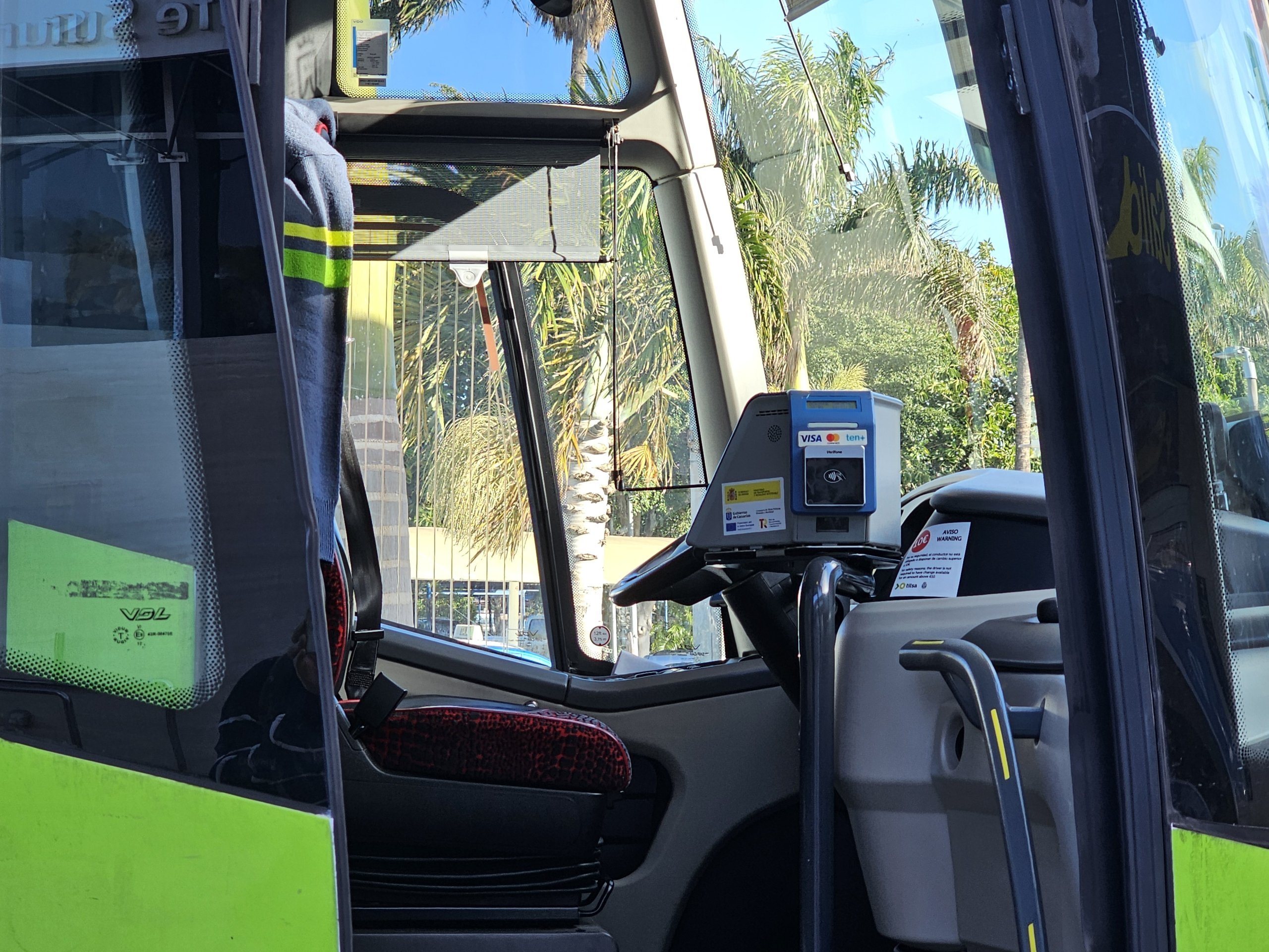 Diğer bir seçenek de büyük otobüs duraklarındaki kiosklardan veya otomatlardan bilet almaktır, ancak bunlar yalnızca Tenerife'deki iki havalimanındaki duraklarda ve ayrıca Santa Cruz ve La Laguna'daki tüm tramvay duraklarında bulunmaktadır.