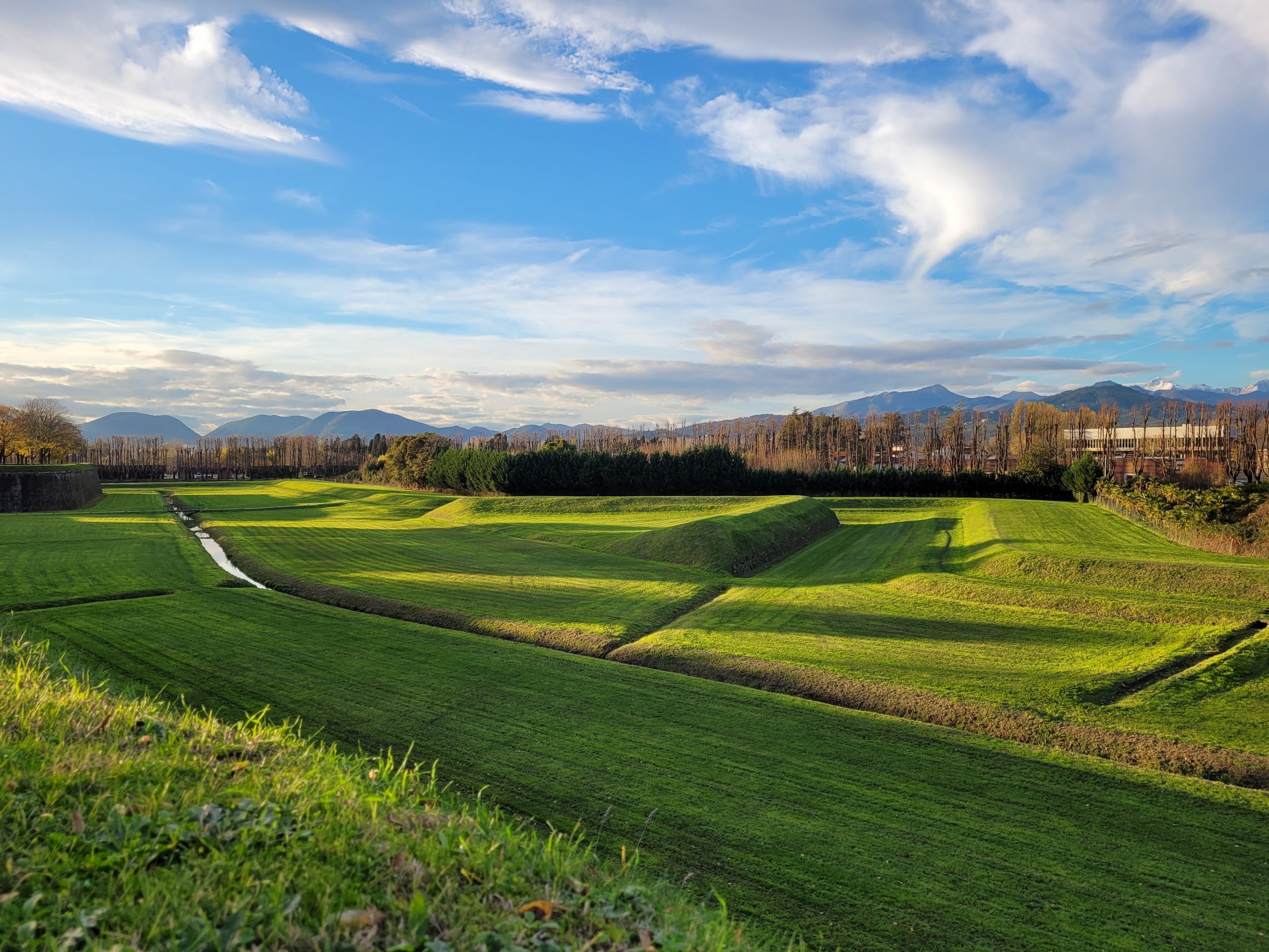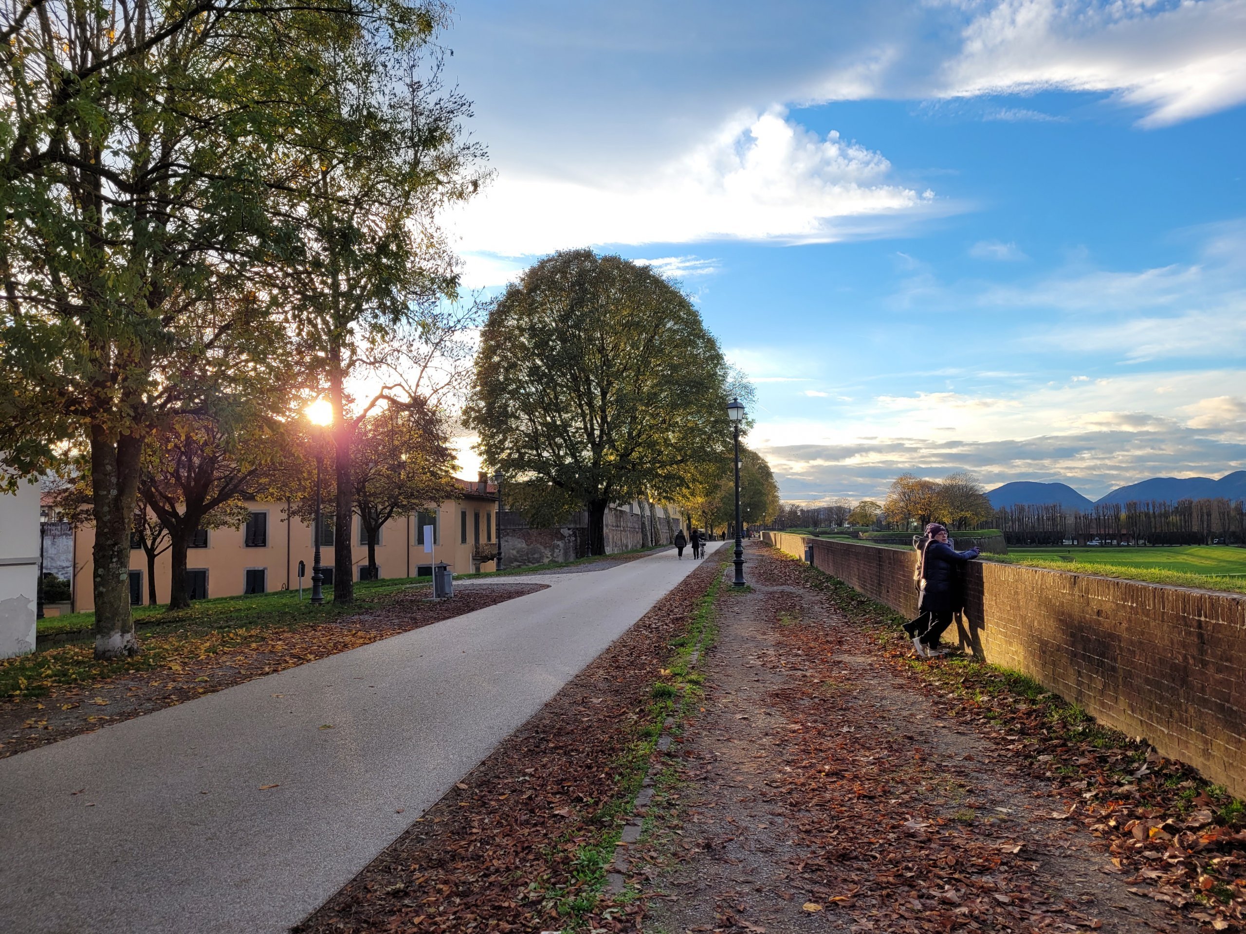 Bankların, ağaçların ve yeşil kuşakların yer aldığı bir yaya gezinti yolu, Apuan Alpleri'nin ve Lucca'nın yükselen merkezinin muhteşem manzaralarını sunan duvarlar boyunca uzanmaktadır.