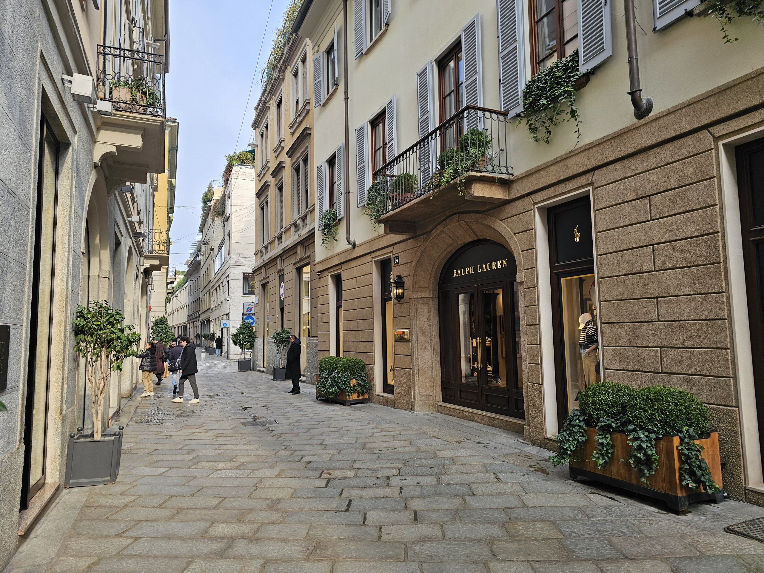 Mağaza ve butiklerin en yoğun olduğu bölge, Quadrilatero d'Oro della Moda, yani modanın Altın Dörtgeni olarak da bilinen Via Montenapoleone çevresidir.