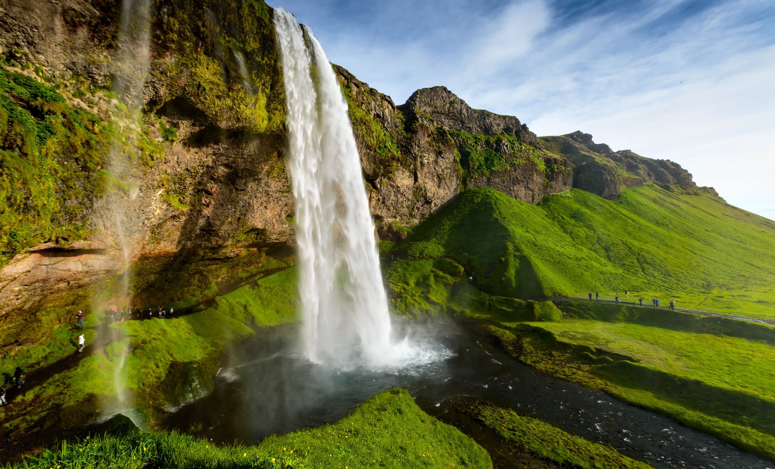 Seljalandsfoss, 60 metreden daha yüksek bir uçurumdan aniden düşen ve birkaç yüz metre ötedeki deniz koyuna dökülen buzul nehri Seljalandsjá tarafından beslenmektedir.