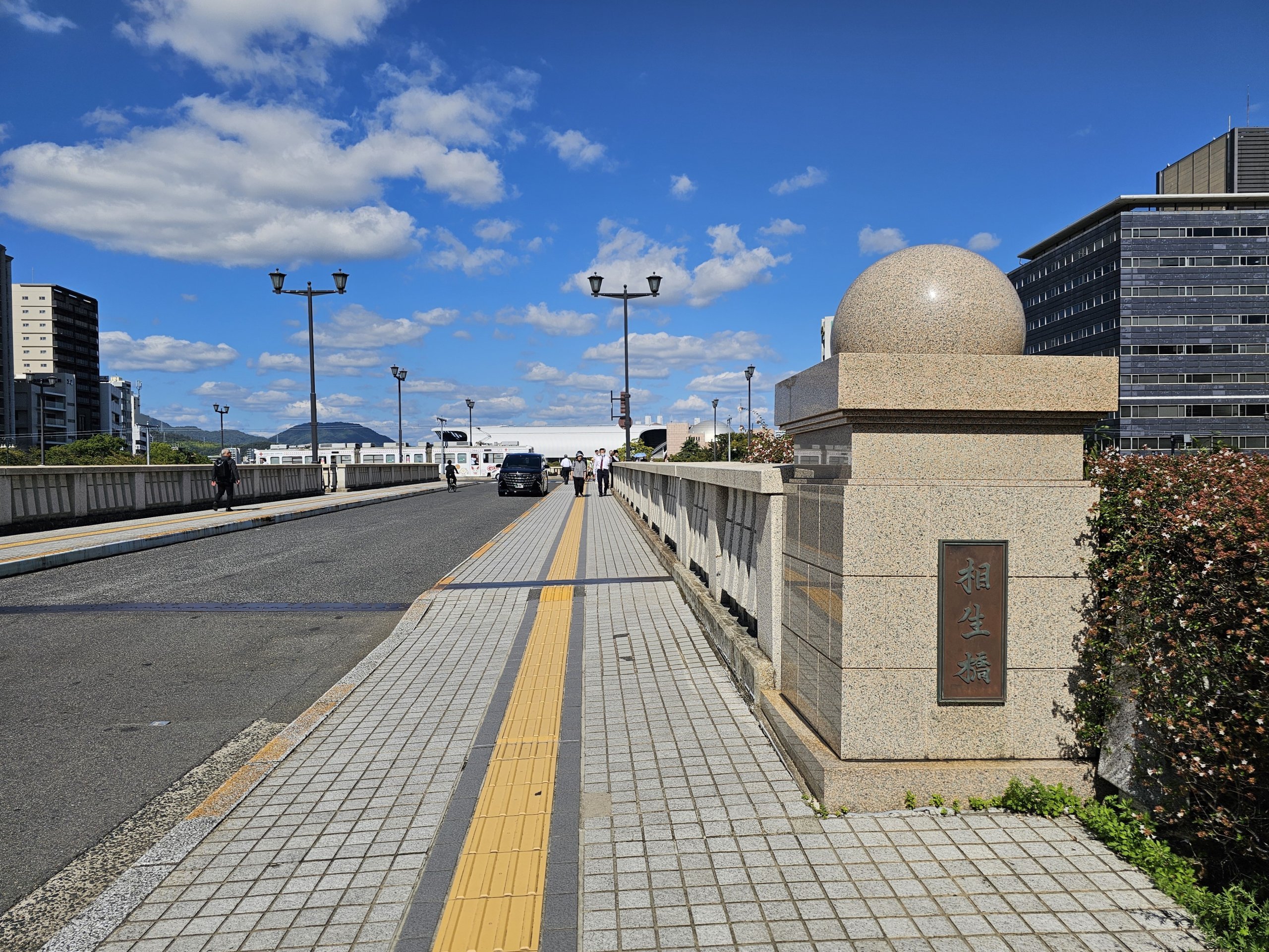 Alışılmadık şekildeki "T" köprüsü, Honkawa Nehri'nin iki yakasını, Anıt Park ve müzesinin bulunduğu adaya bir sapakla bağlamaktadır.