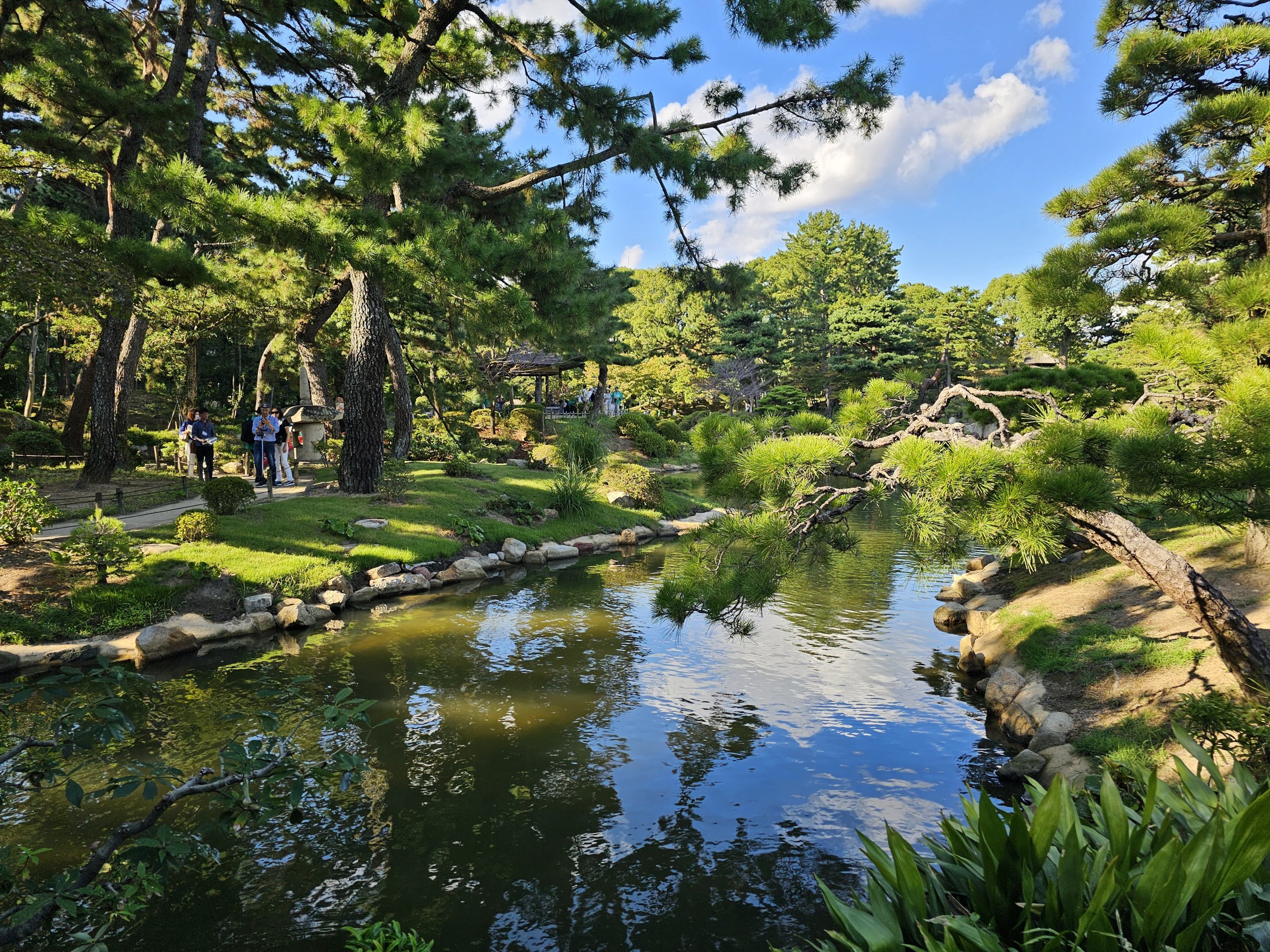 Güzel Shukkeien Parkı, çok sayıda bodur ağaç, bonsai, yosun, özenle kesilmiş çimler ve koa sazanı havuzları ile Japon bahçelerinin tipik bir örneğidir.