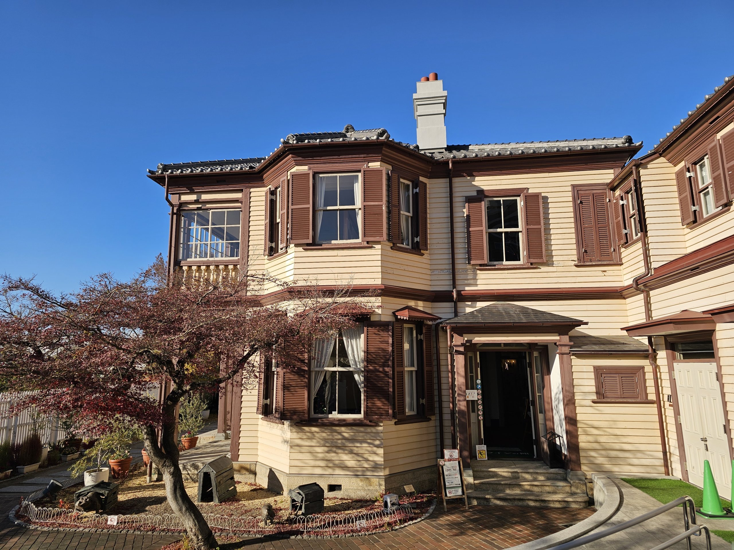Çoğu Japon şehrinin aksine, Avrupa mimarisi, eski villalardaki kafeler ve hareketli şehir merkezi, liman ve hatta yakındaki Kyoto veya Osaka şehirlerinden daha sakin bir atmosfer göreceksiniz.
