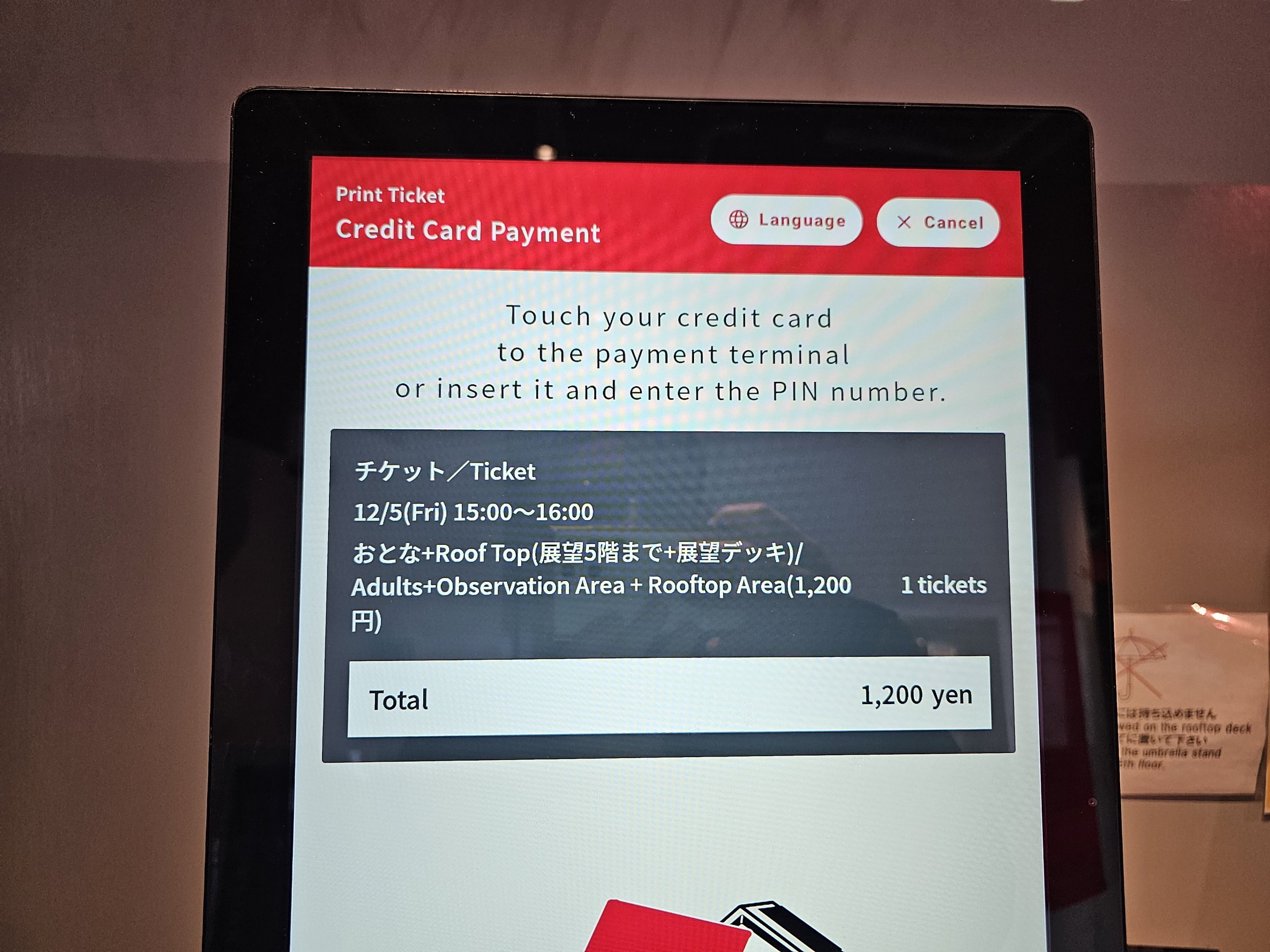 Biletler sadece ana gözlem güvertesi için ya da ek olarak çatının tepesi için satın alınabilir.