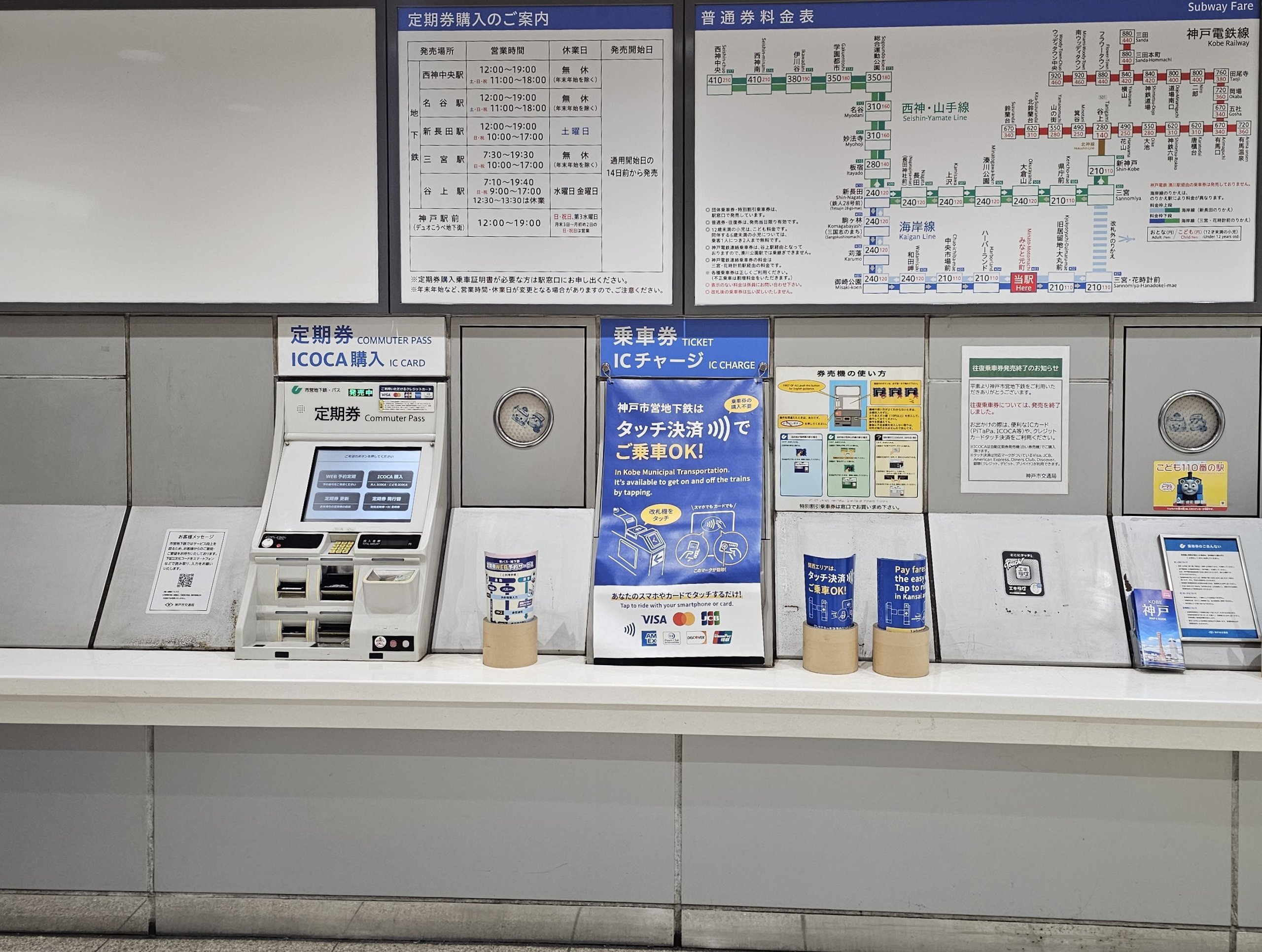 ICOCA kartı Kobe veya Osaka'da satılmaktadır, ancak Tokyo'daki Suica gibi ülke çapındaki Japon kartlarından herhangi birini burada kullanabilirsiniz.
