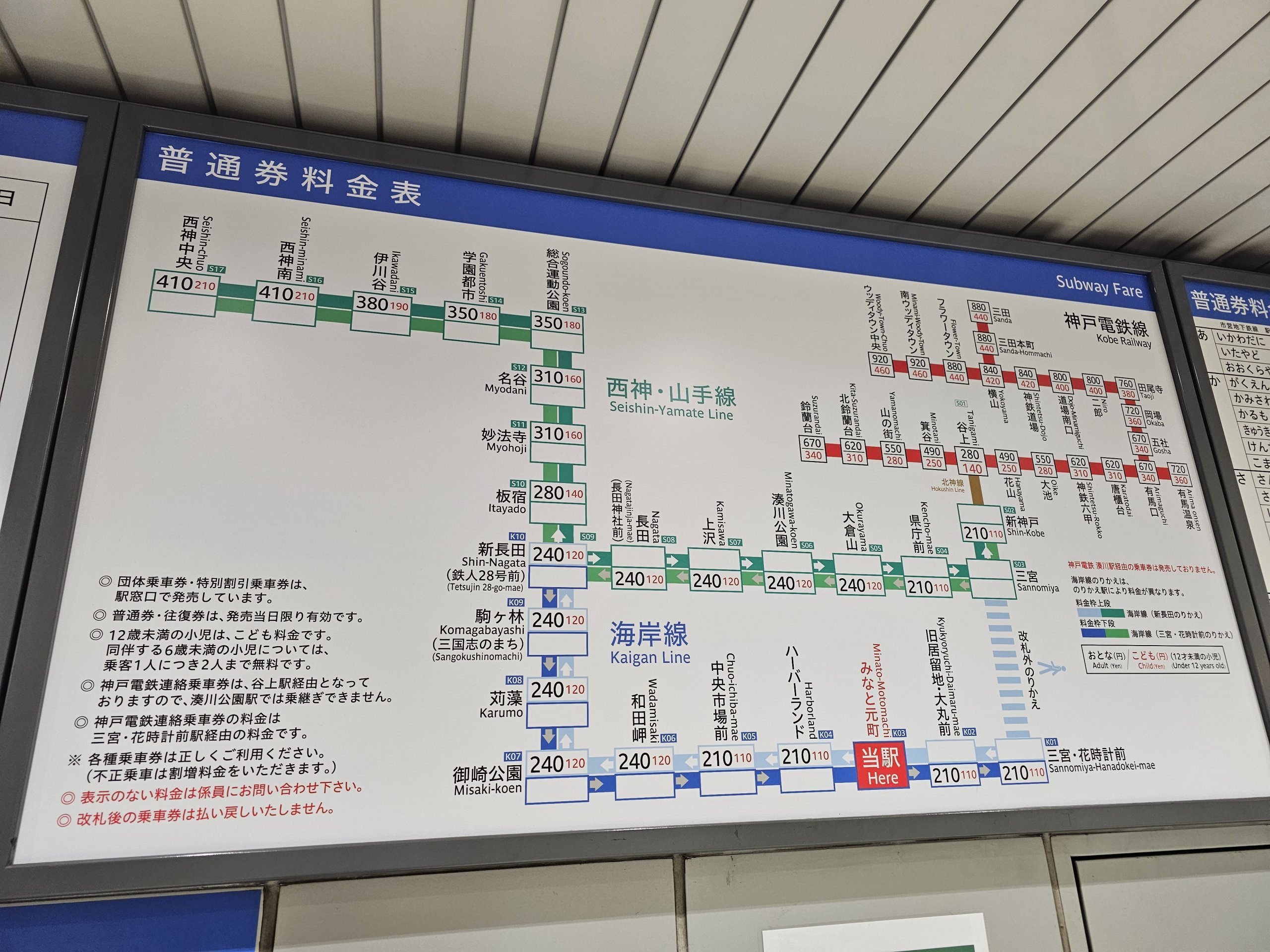 Bunun istisnası Sannomiya istasyonu çevresindeki küçük şehir merkezi bölgesidir ve burada sadece 1 yolculuk için 120 jpy ödersiniz.