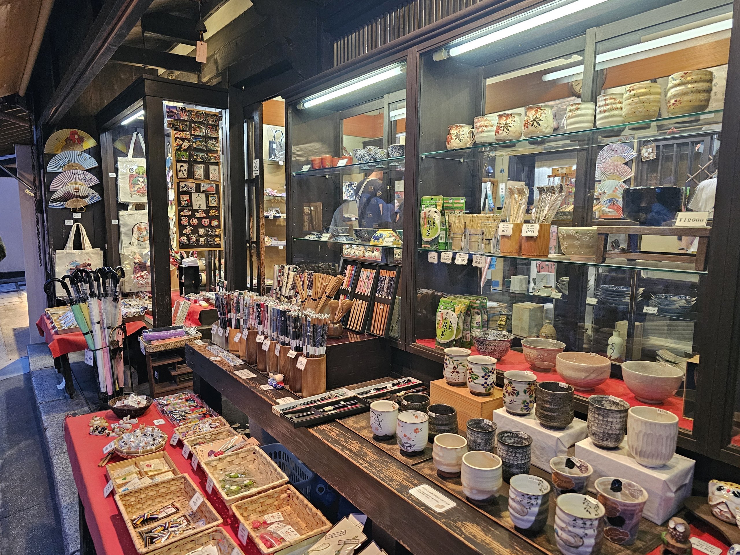 Çay evleri ve geleneksel Japon restoranlarına ev sahipliği yapan Gion'un aksine, Higashiyama daha çok hediyelik eşya dükkanları, kafeleri ve curcunalarıyla bilinmektedir.