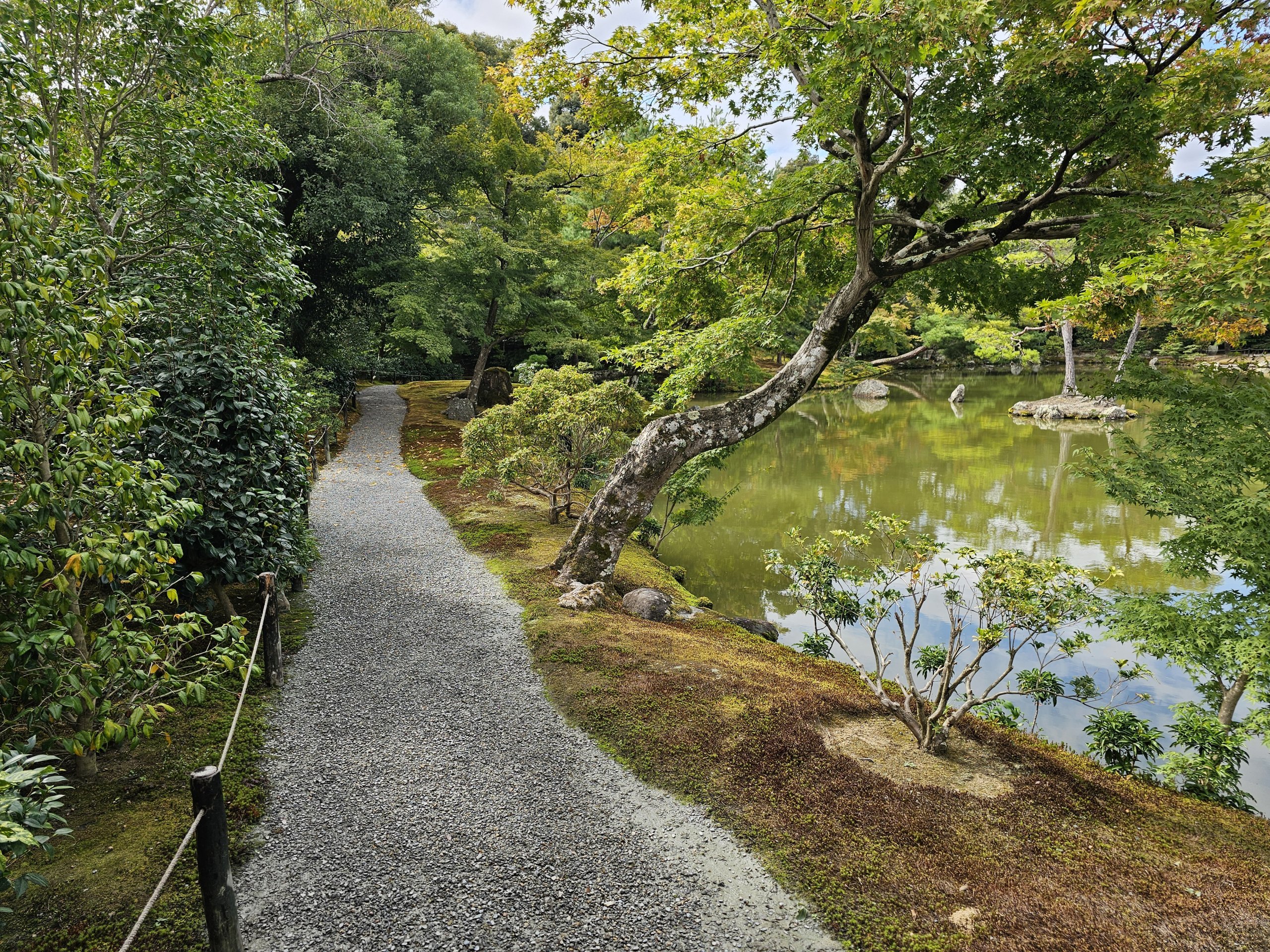 Altın Köşk, ağaçların yapraklarının renklendiği Kasım ayının ikinci yarısında en güzel halini alan güzel bir Japon bahçesinin ortasında, küçük bir gölün kıyısında yer almaktadır.