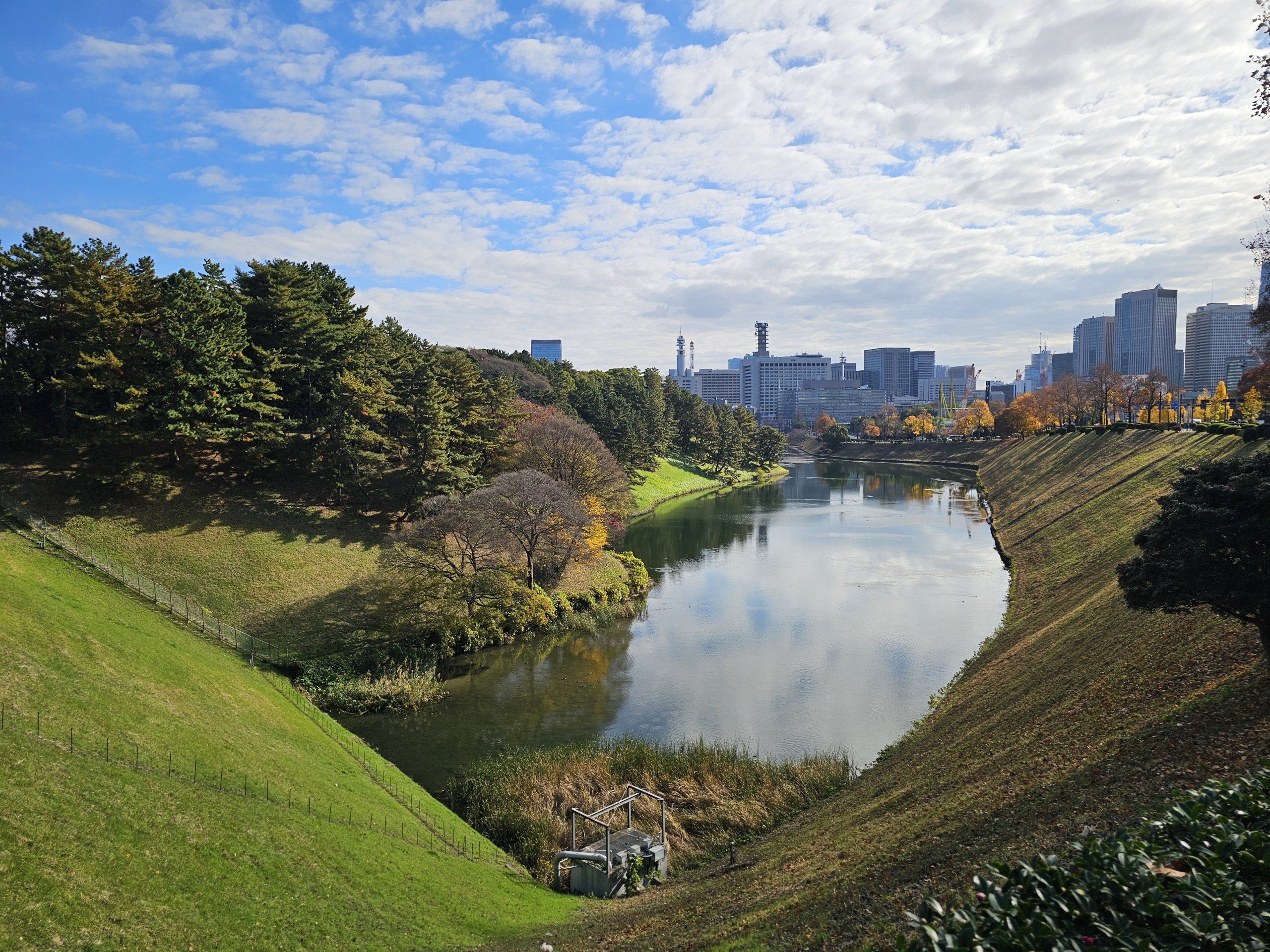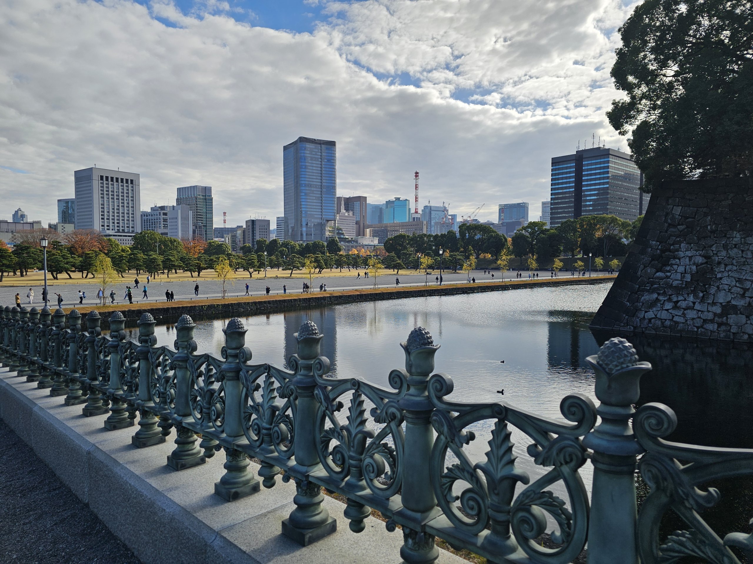 Yürüyüşüme Tokyo İstasyonu'nda başladım, Doğu Bahçeleri ve Kitanomaru Parkı boyunca yürüdüm ve sarayın ana kısmının önünden Nijubashi Köprüsü'ne geri dönmek için hendeğin etrafında yürüdüm.