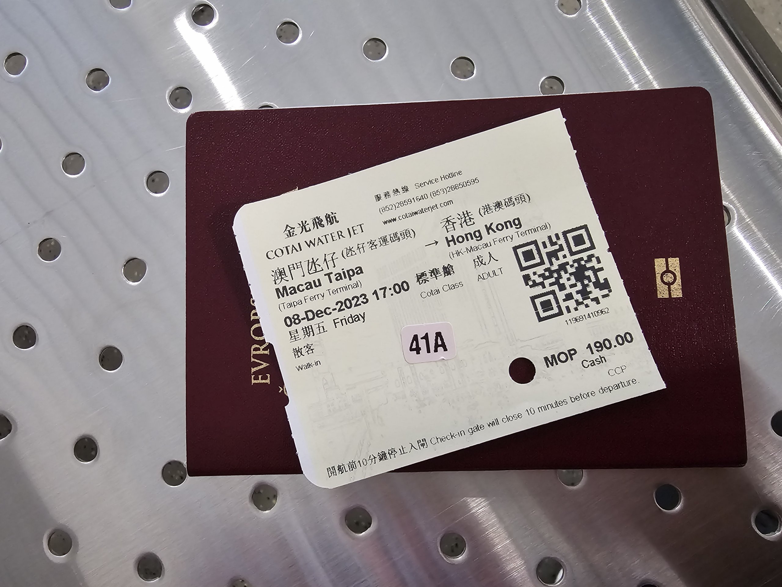 Makao'dan Hong Kong'a veya tersi yönde seyahat ederken, her iki tarafta da her zaman pasaport kontrolünden geçmeniz gerekir. Her iki şehir de resmi olarak Çin'in bir parçası olsa da, kendi kuralları olan iki özerk bölgedir, bu nedenle şehirler arasında pasaport olmadan seyahat edemezsiniz.
