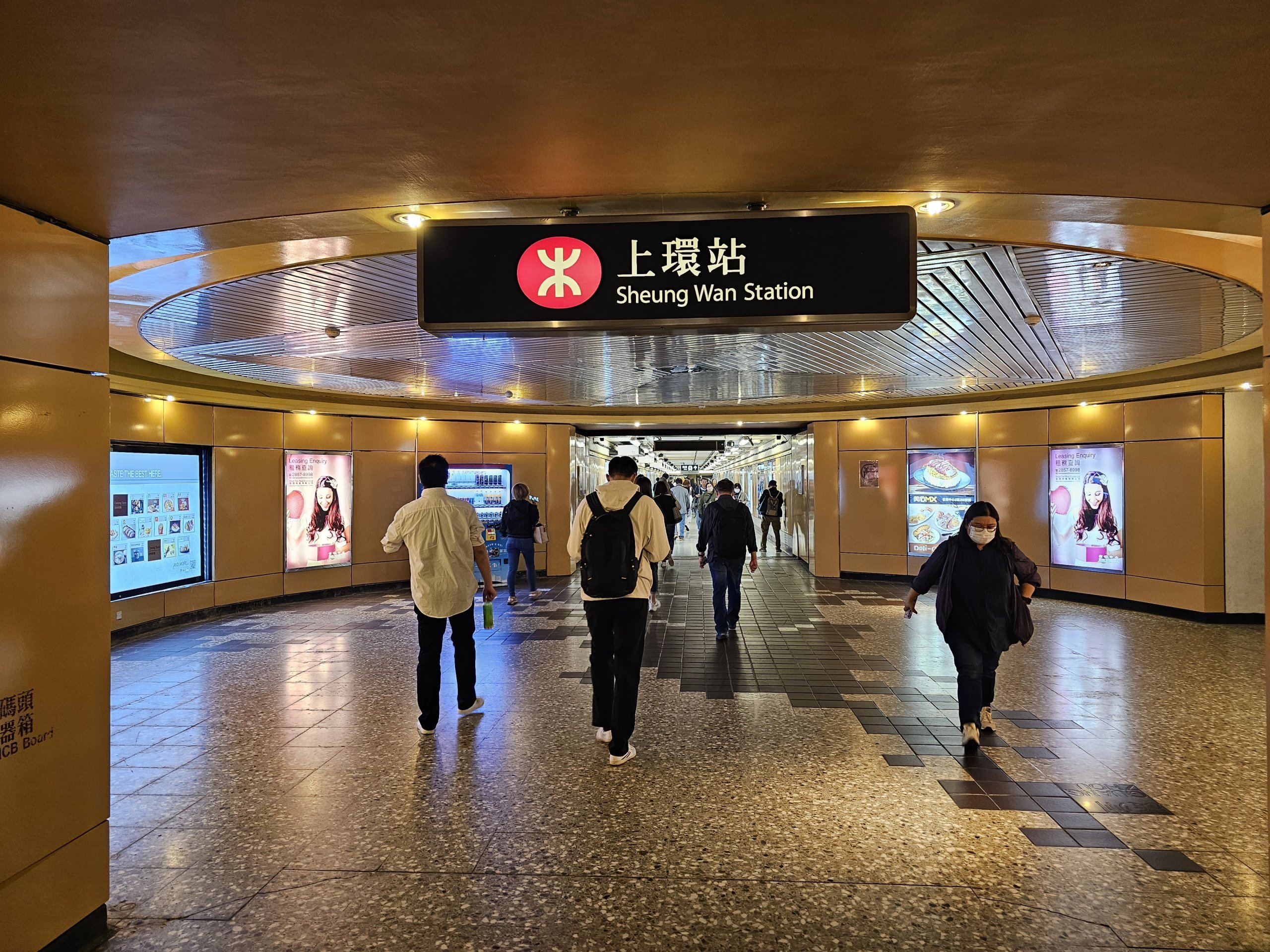 - Sheung Wan metro istasyonu - koyu mavi "Ada Hattı"