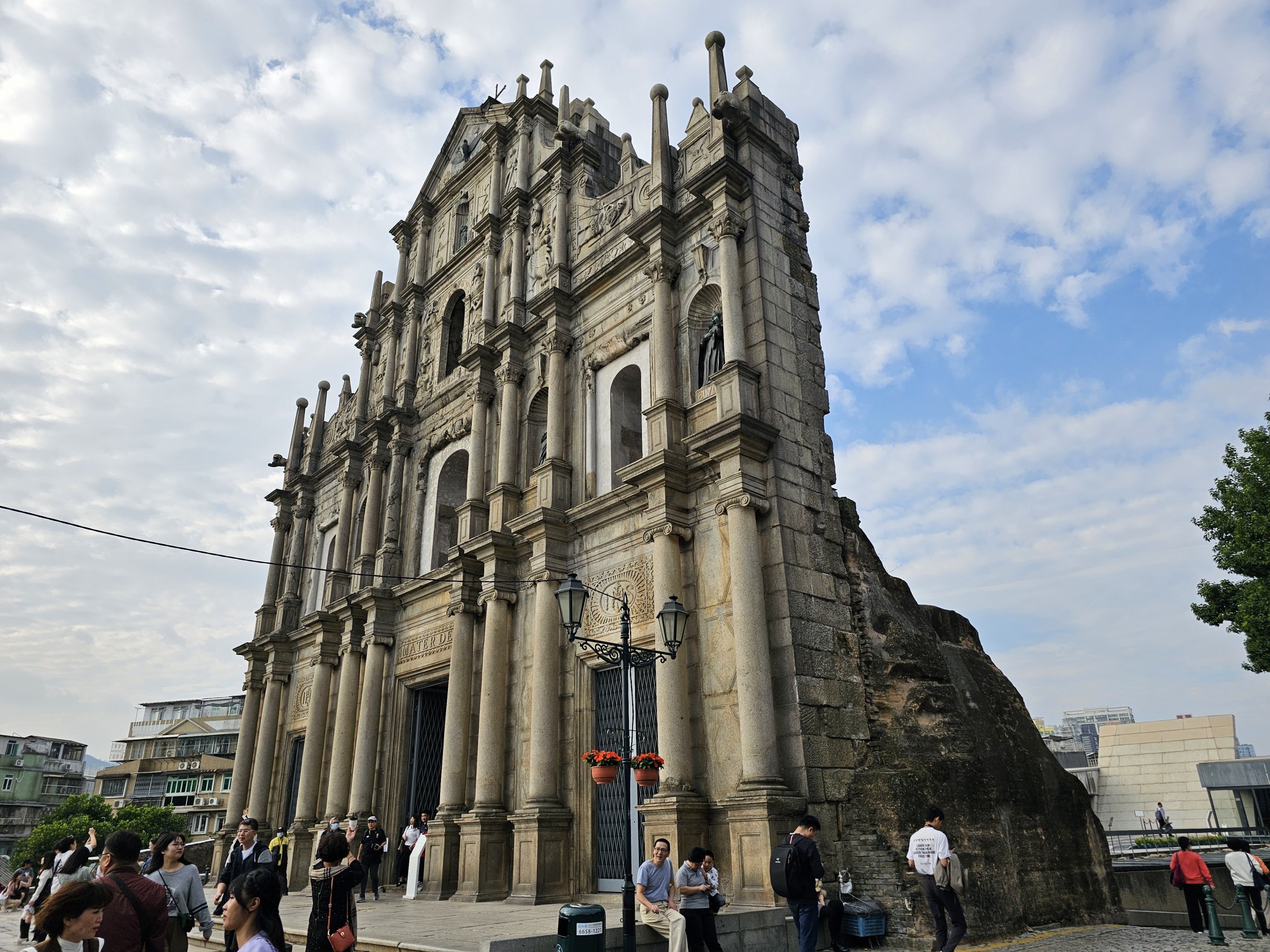 "Mater Dei" olarak da bilinen alan, tarihi Makao'nun ortasında yer almaktadır ve anıtın kendisi dışında, Makao'nun zıtlıklarla dolu son derece ilginç manzaralarını sunmaktadır. Bir karede tarihi binaları, 1980'lerde inşa edilmiş sıradan apartman bloklarını ve arka planda modern gökdelenleri göreceksiniz.
