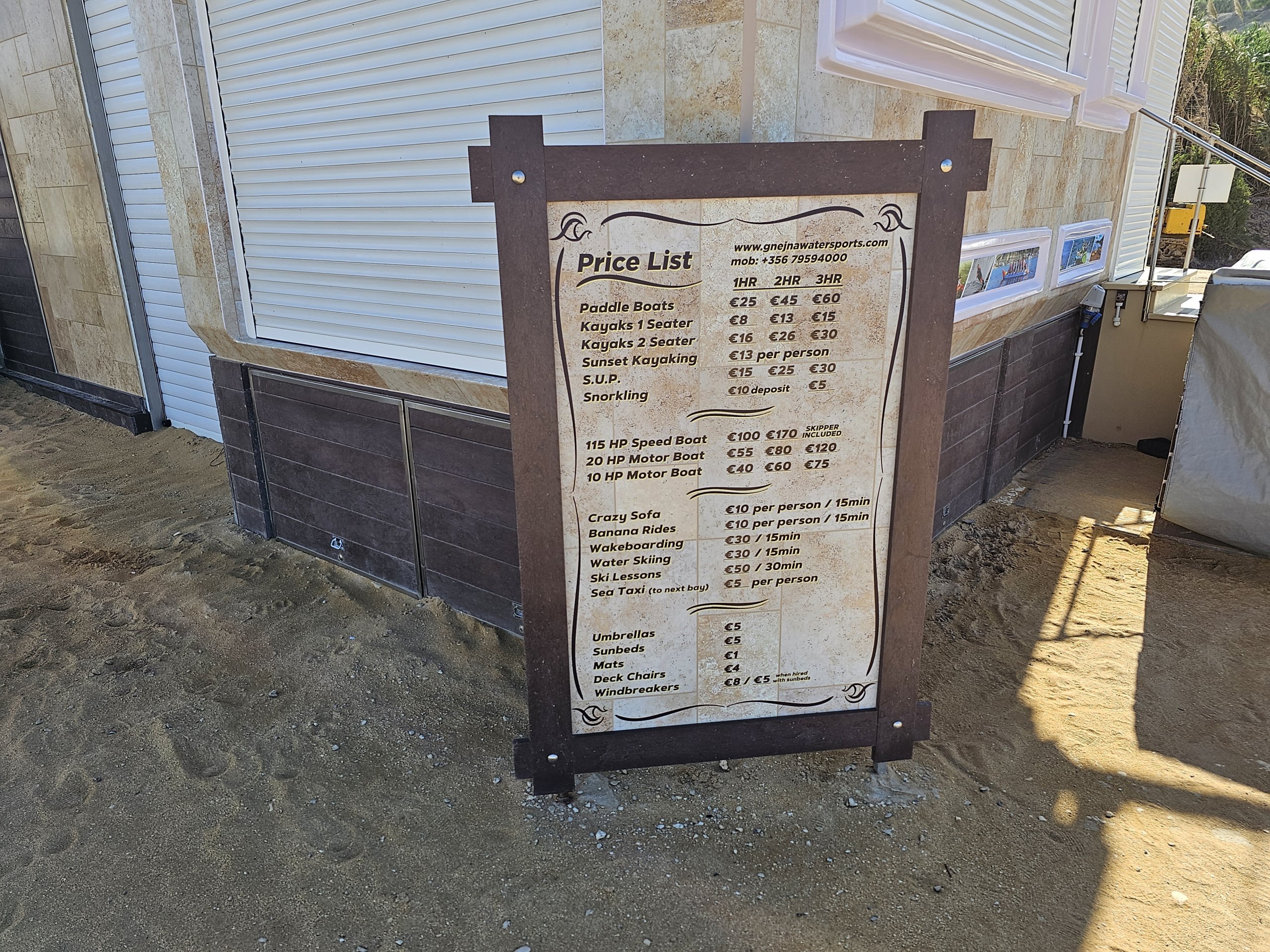 Ayrıca içecek standlarından bir kayık (bir saat için 8 avro) veya şnorkel ekipmanı (bir gün için 10 avro) kiralayabilirsiniz. Başka birçok turistik yer var.