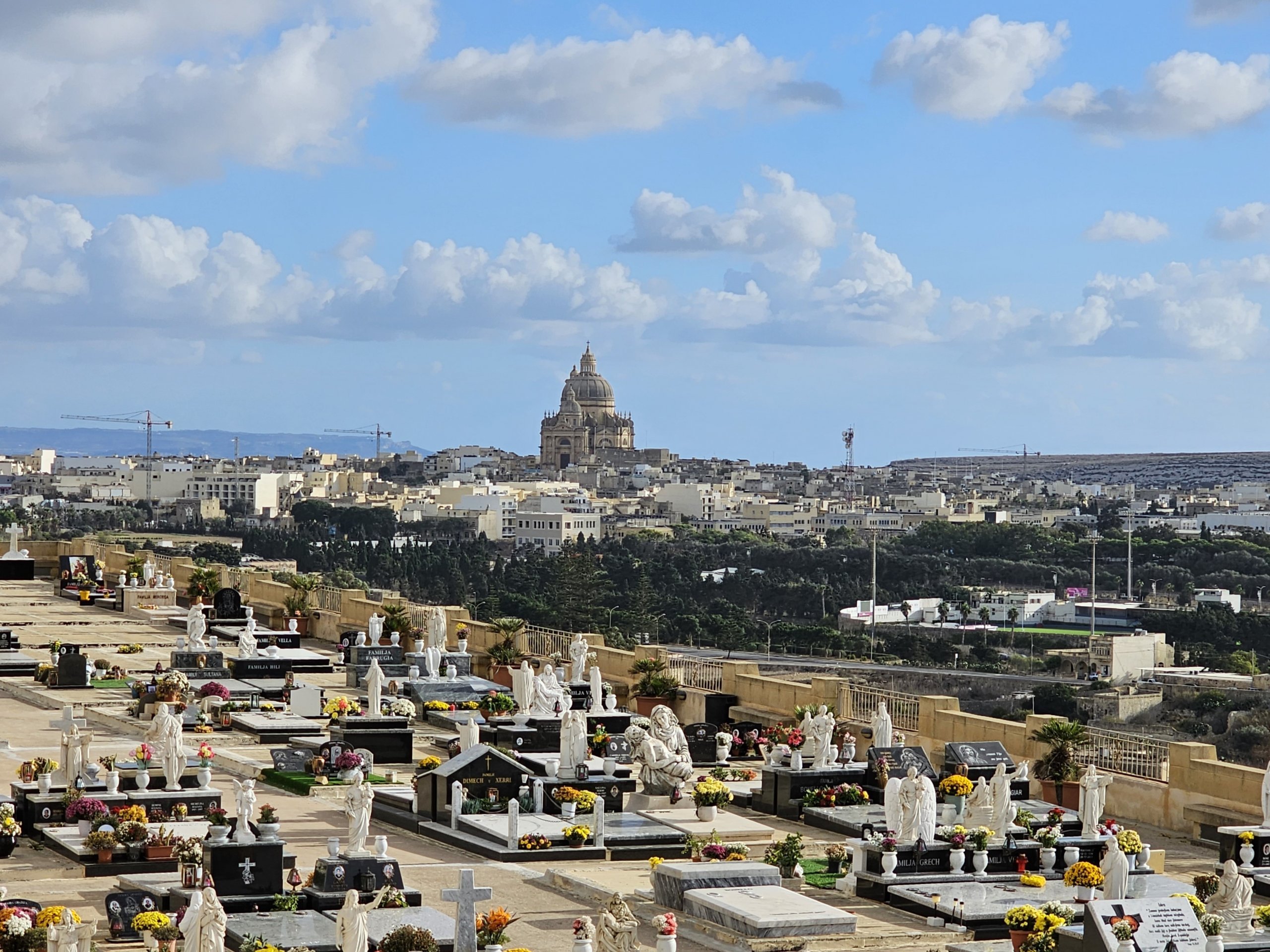 - Xağra'daki mezarlıktan görünüm (konum şu adreste Google.com/maps)