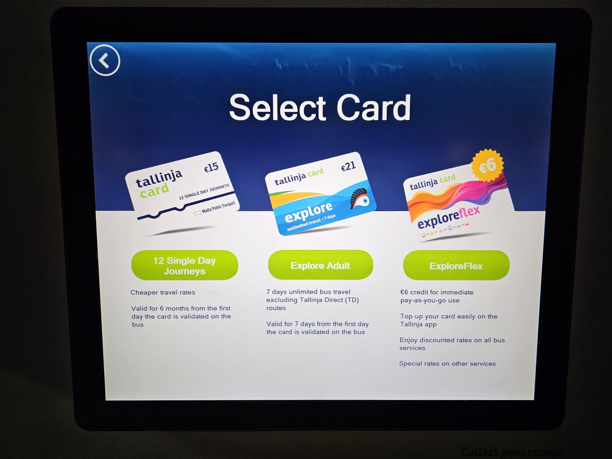 Biniş şeklinize bağlı olarak kredi yükleyebileceğiniz kişiselleştirilmiş Tallinja kartı özellikle uzun süreli konaklamalar için faydalıdır (satın alma fiyatı 10 avrodur ve ek olarak tüm kişisel bilgilerinizi göndermeniz gerekir).