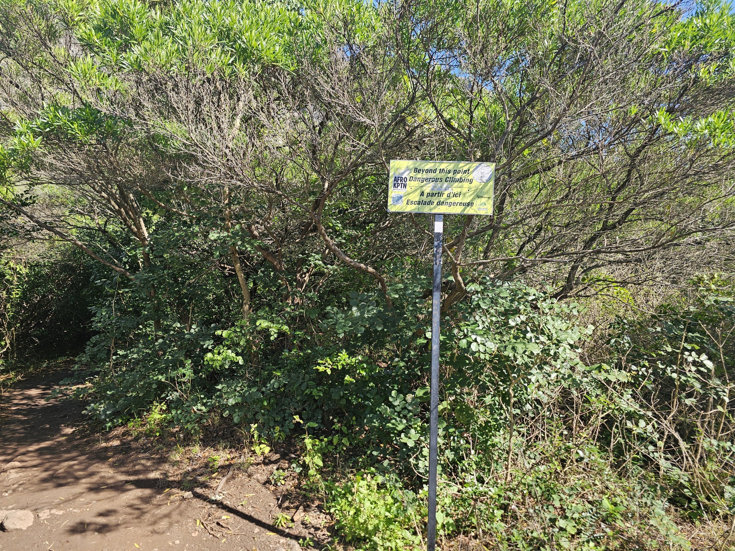 Bu noktadan sonra yol çok daha zorlu hale geliyor. Bir uyarı tabelasını geçiyorum ve yukarı baktığımda tabeladaki metnin doğru olması gerektiği açık!