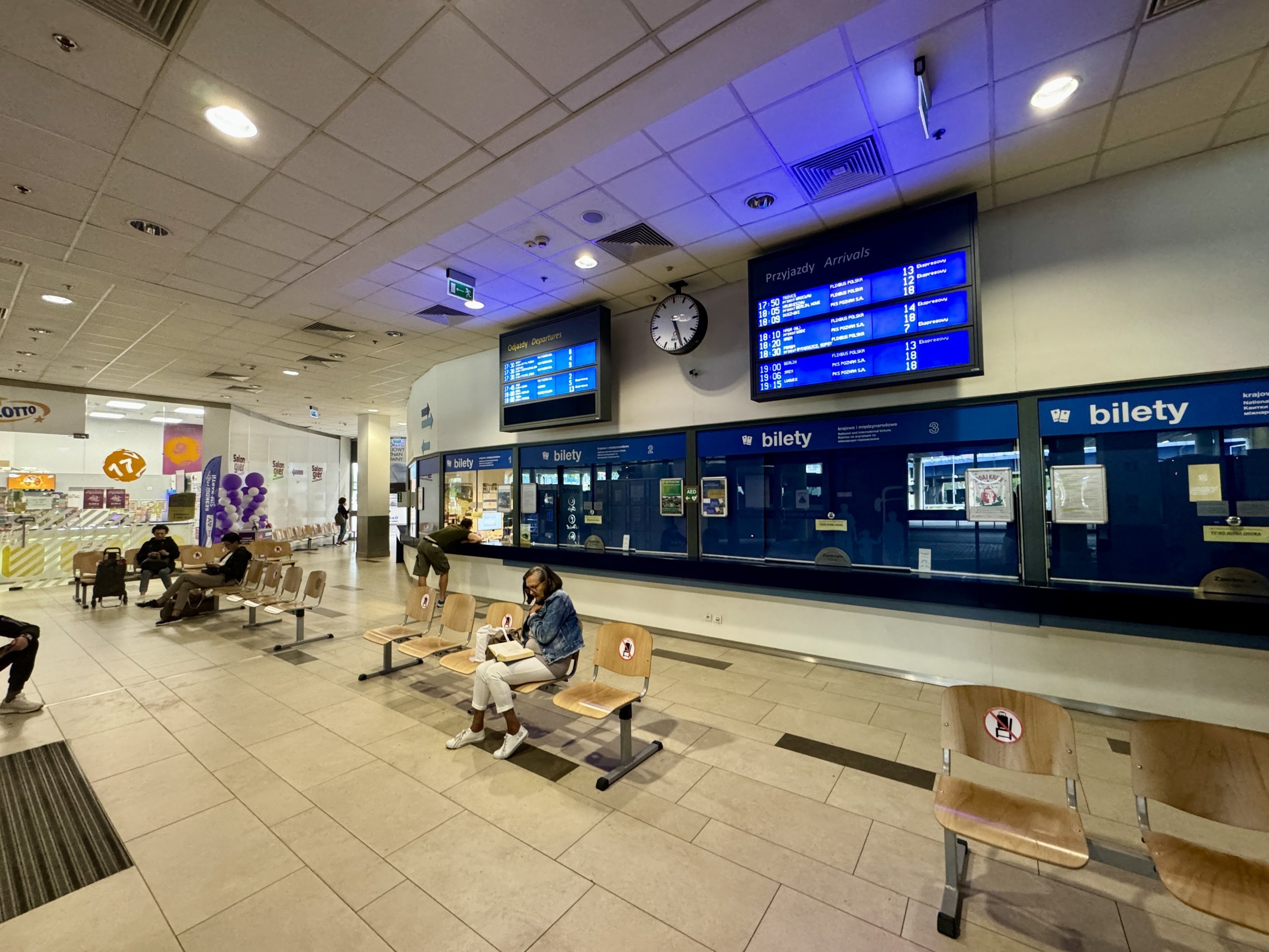 Ana otobüs terminali, ana tren istasyonu ile birlikte Galeria Avenida mağazasında yer almaktadır. Günün 24 saati açıktır ve ayrıca bir bagaj muhafazası da vardır.