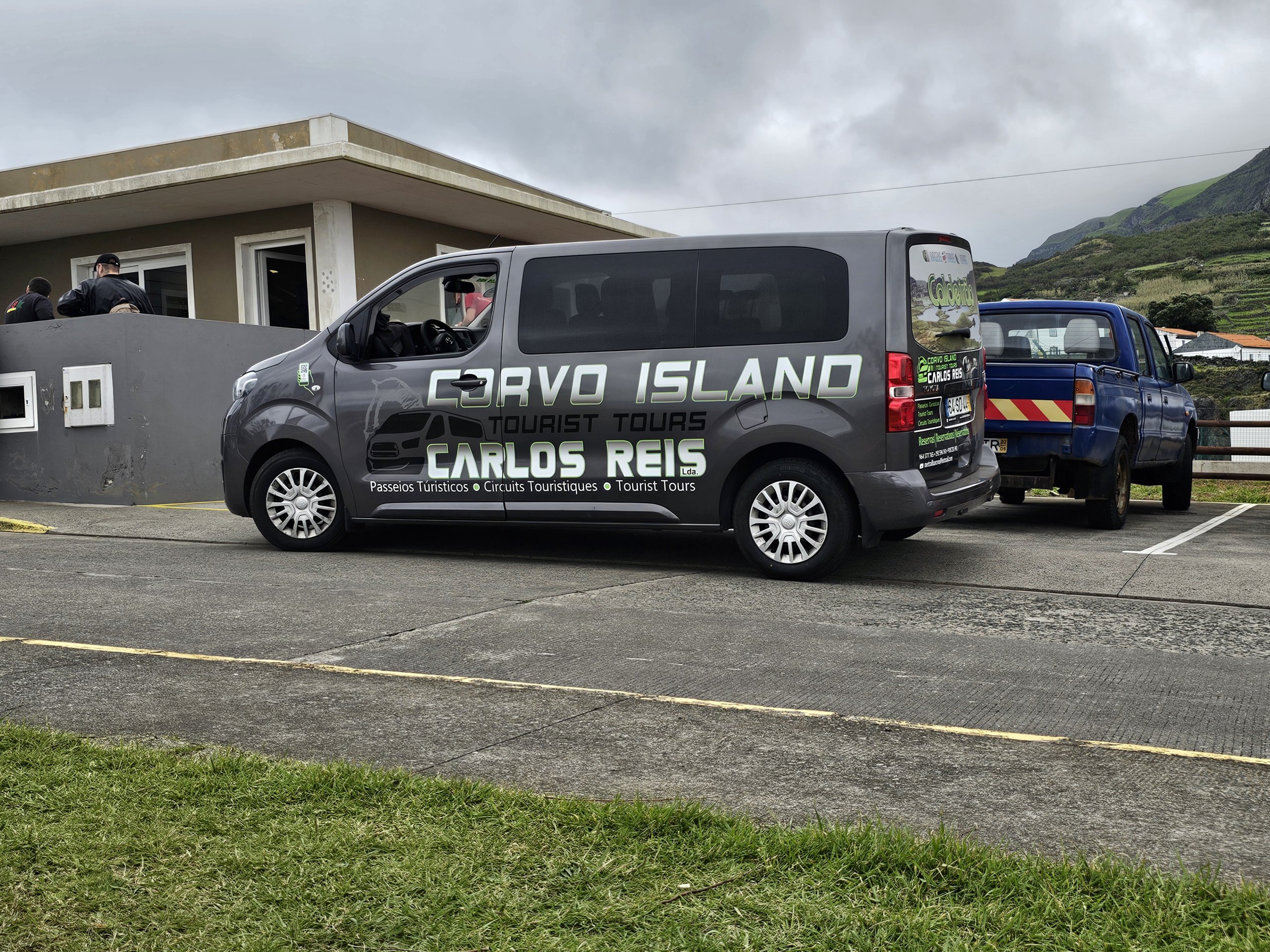 Bir turist olarak, Corvo'da dolaşmak için temelde sadece iki seçeneğiniz vardır - bir tur operatörü (araba veya minibüs) ile veya yürüyerek.