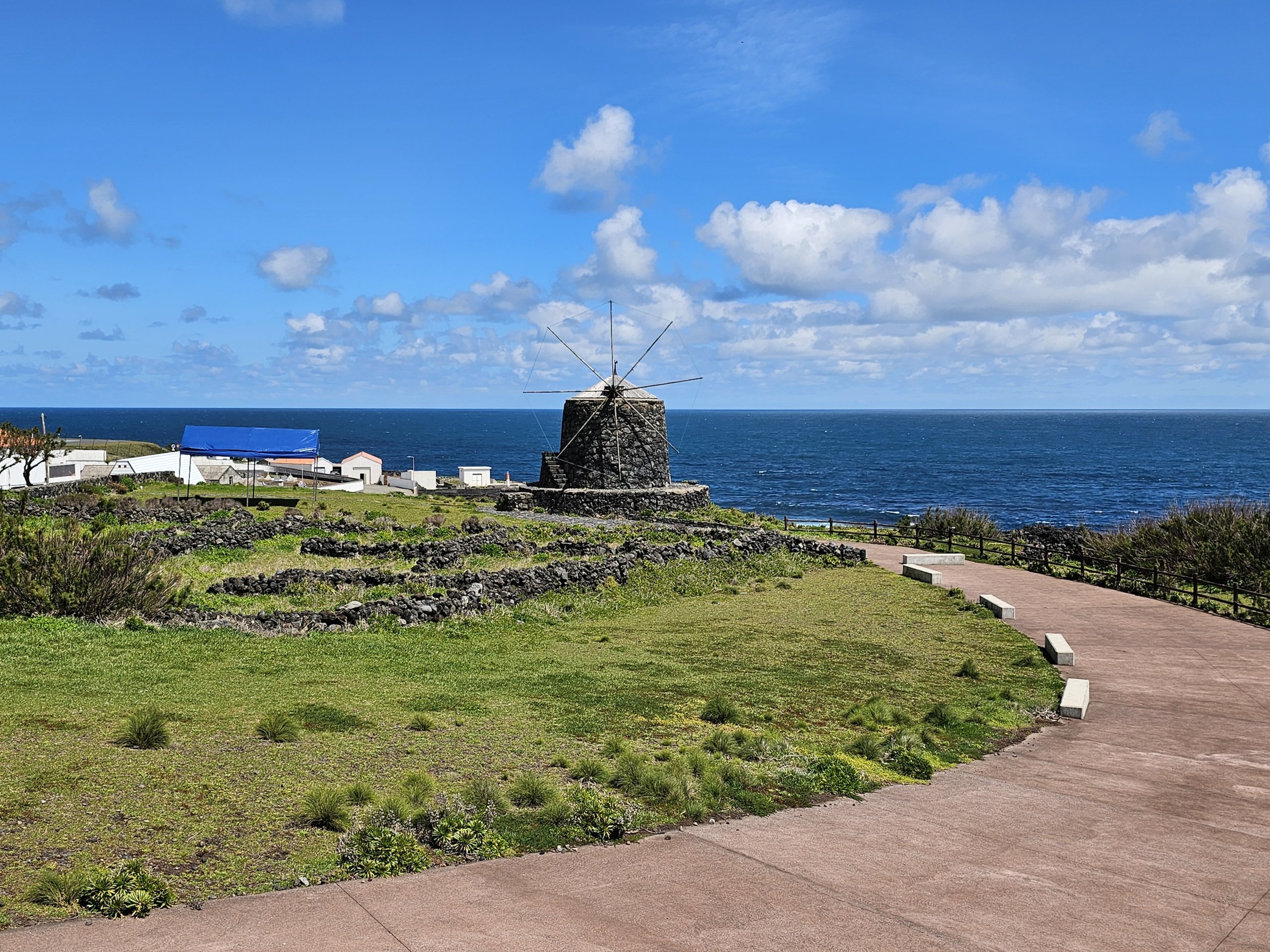 Üç geleneksel yel değirmeninden oluşan grup, Corvo adasındaki popüler cazibe merkezlerinden biridir.