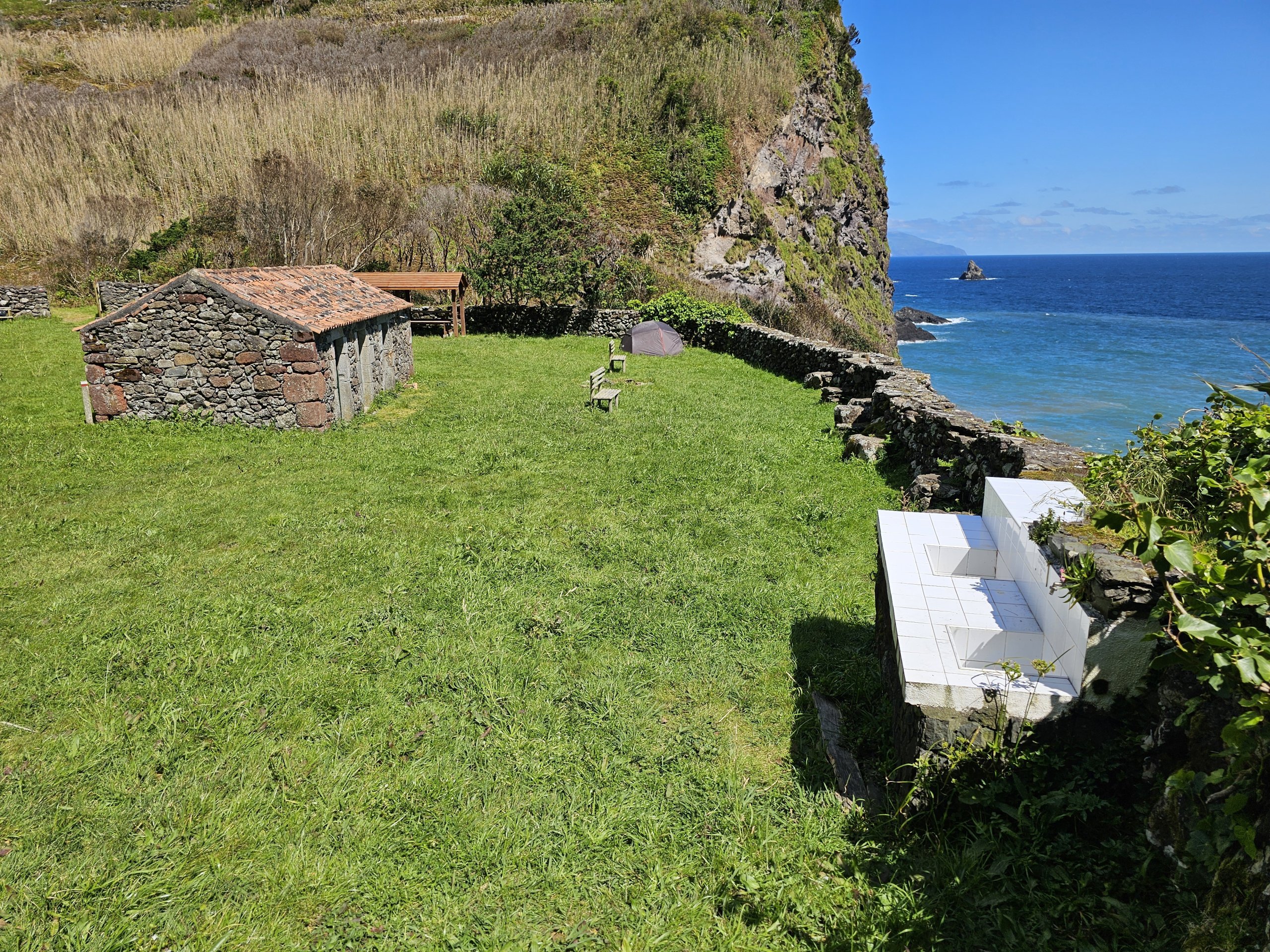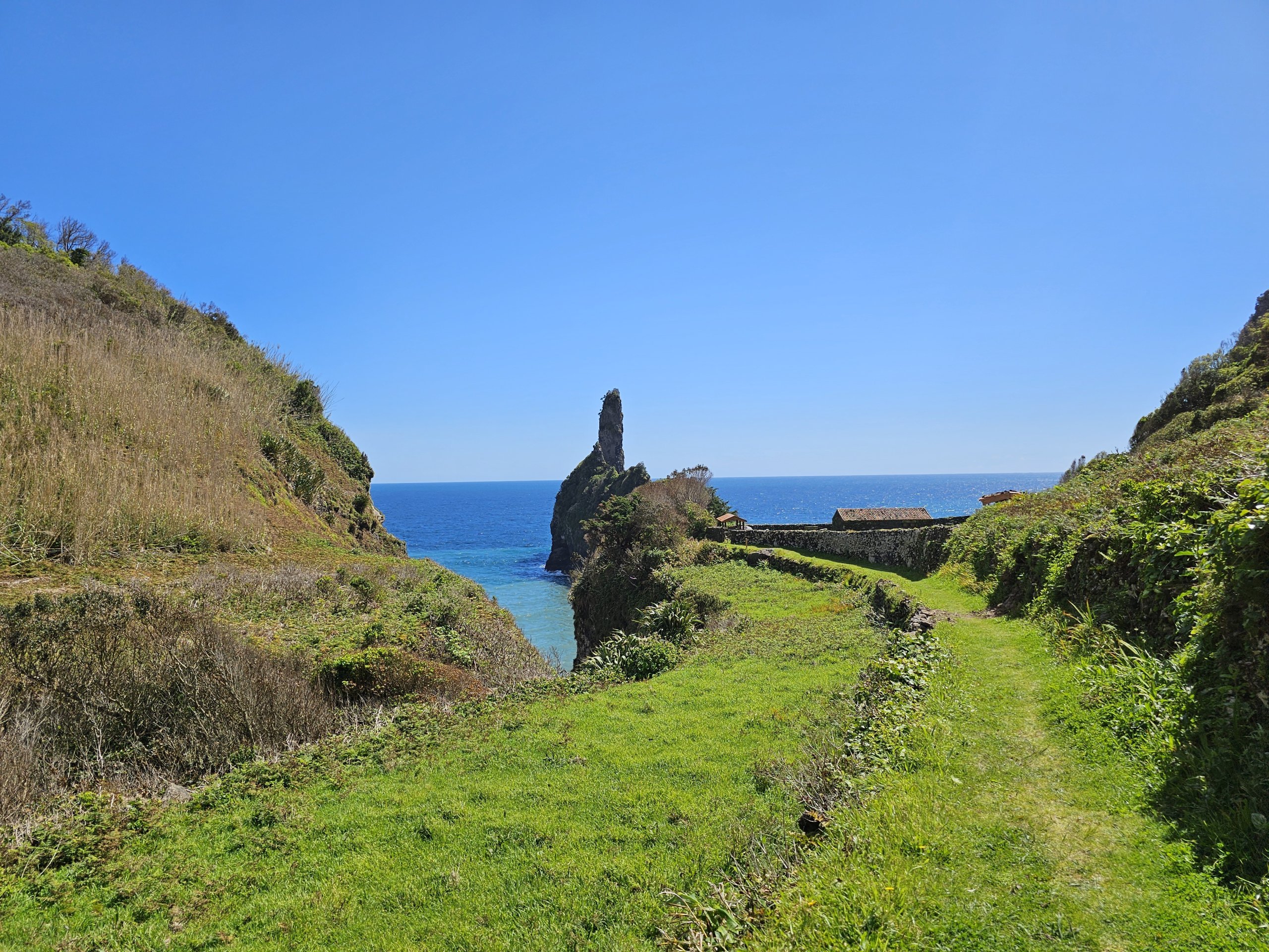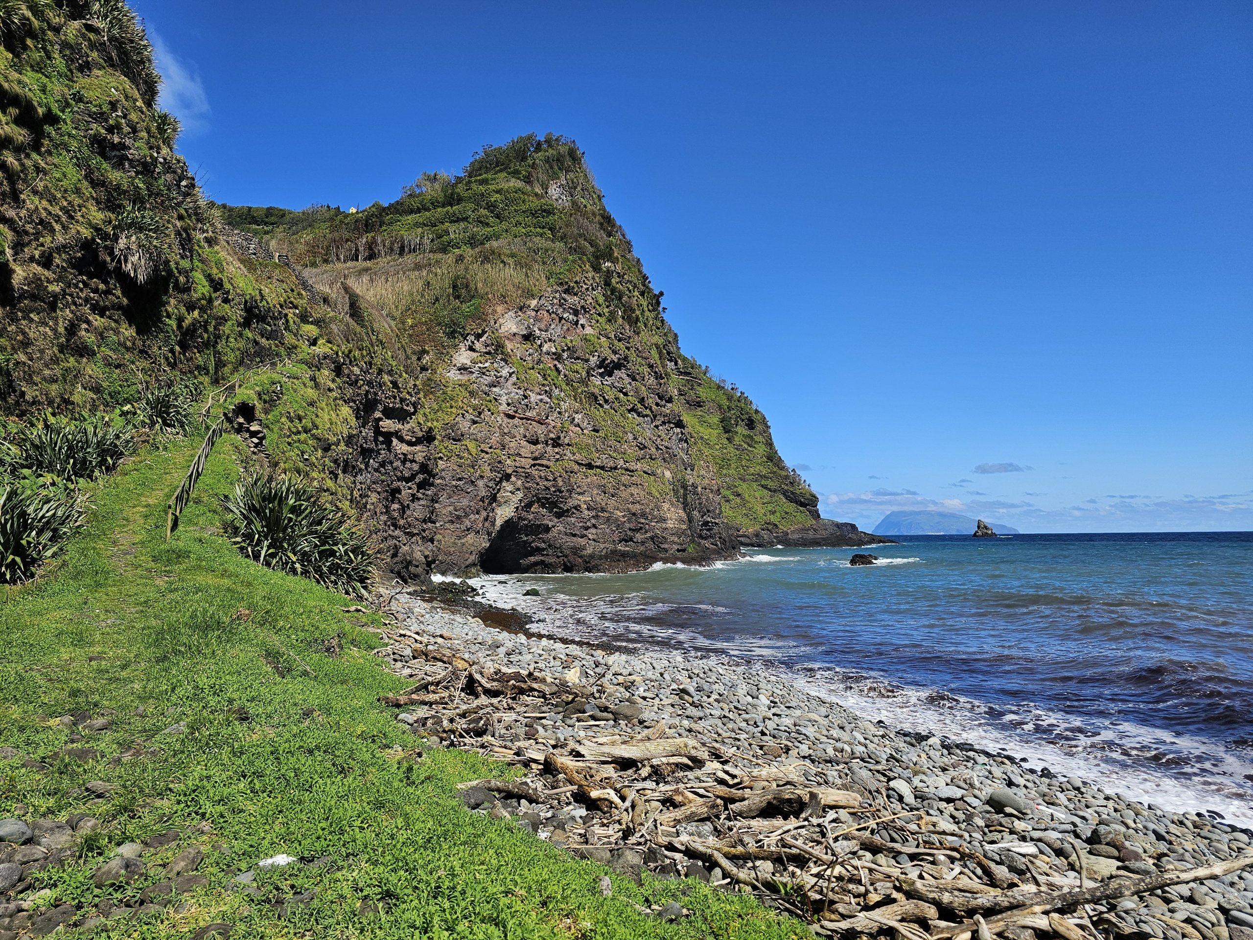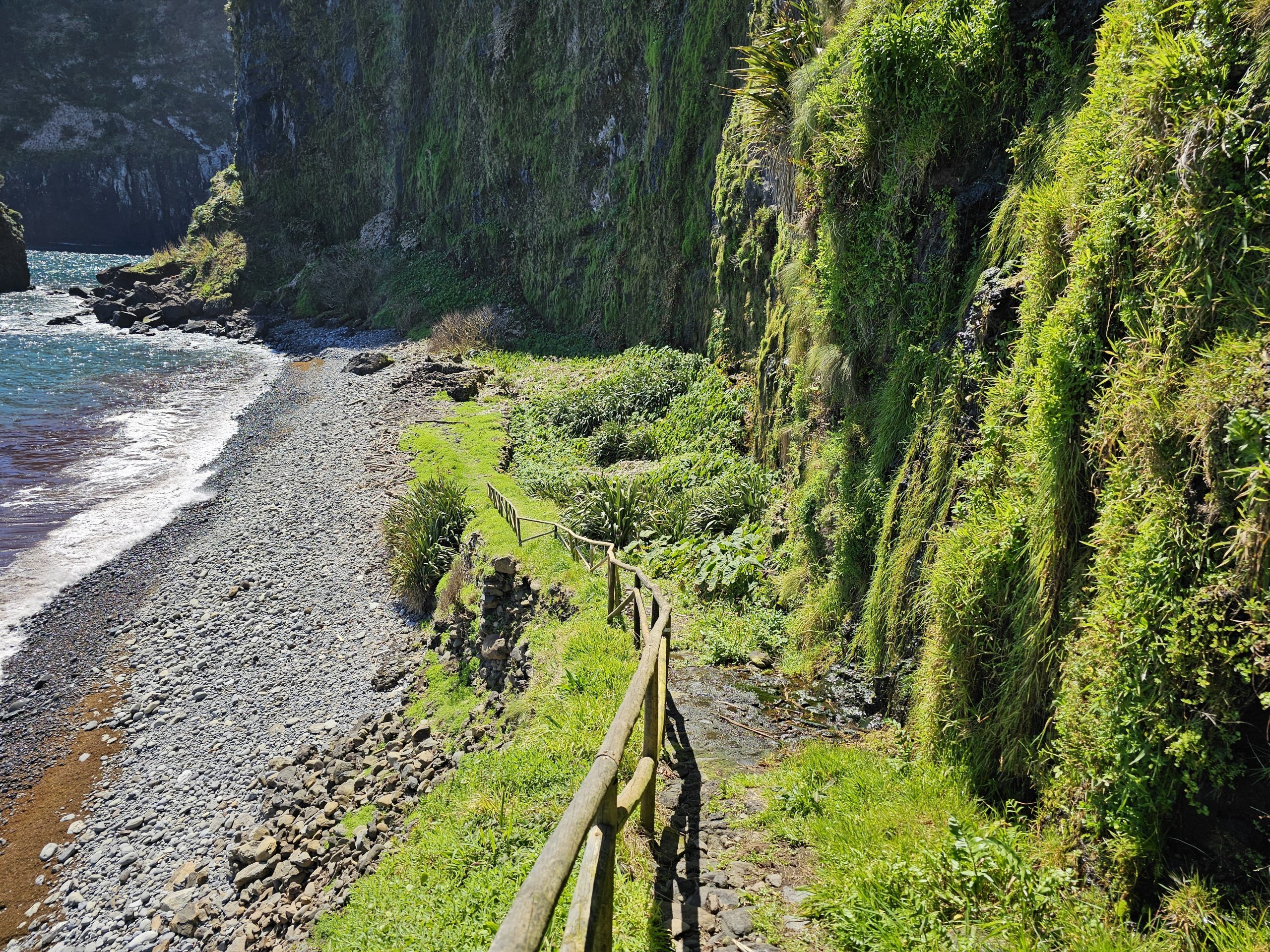Baía de Alagoa aynı zamanda Flores'in tüm doğu kıyısı boyunca uzanan GR01FLO işaretli yürüyüş yolu üzerindedir.