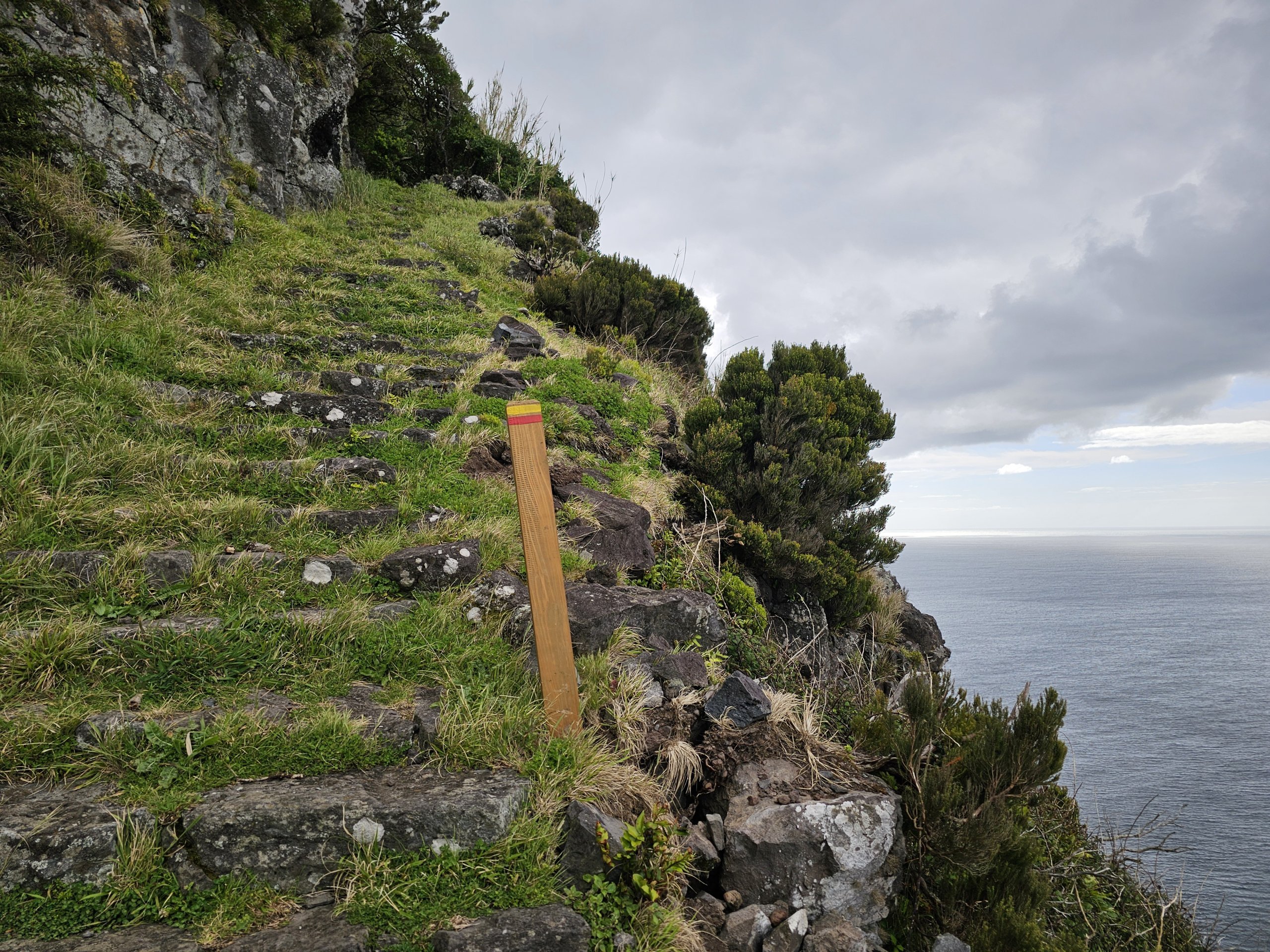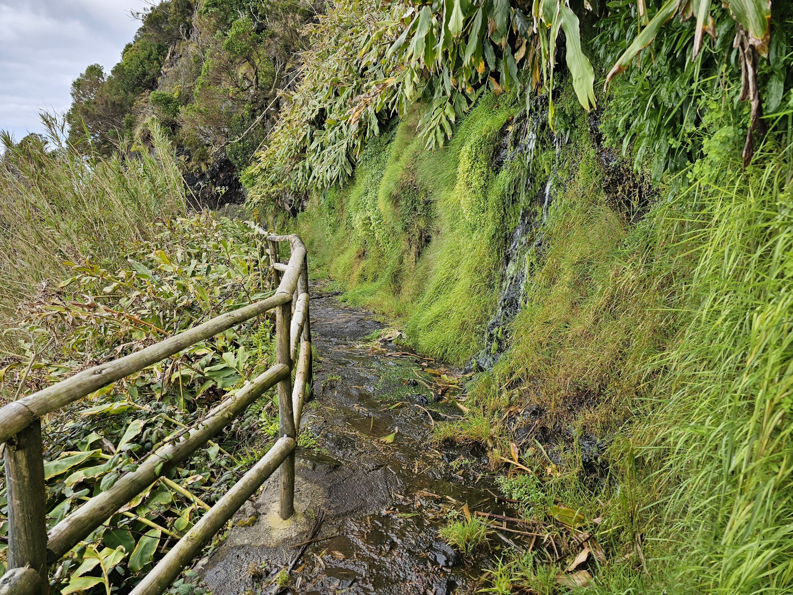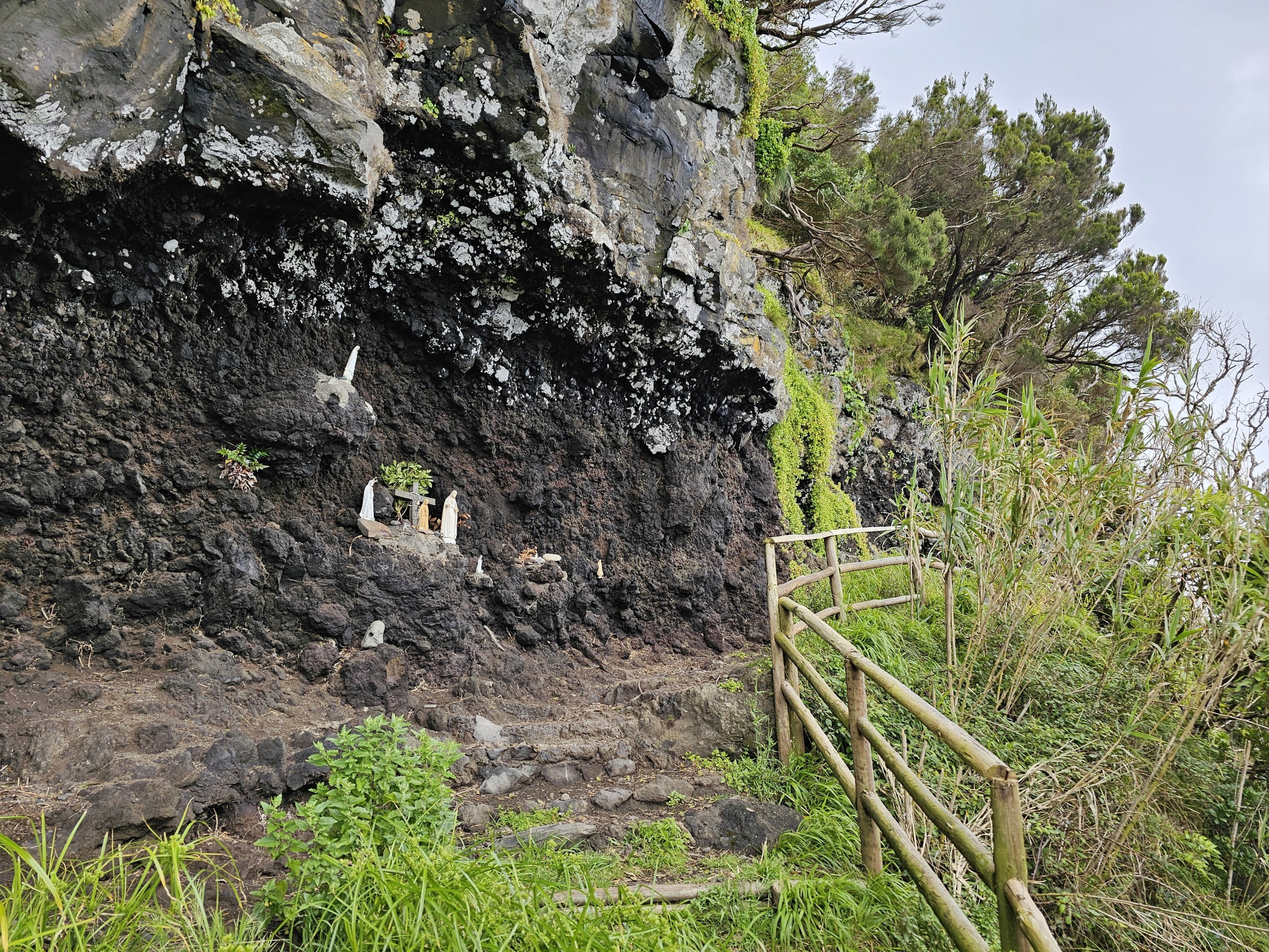 Güzel işaretlenmiş PR4FLO patikası sizi Lajes'in eteklerinden Fajã de Lopo Vaz yerleşimine kadar uçurumların kenarı boyunca götürür.