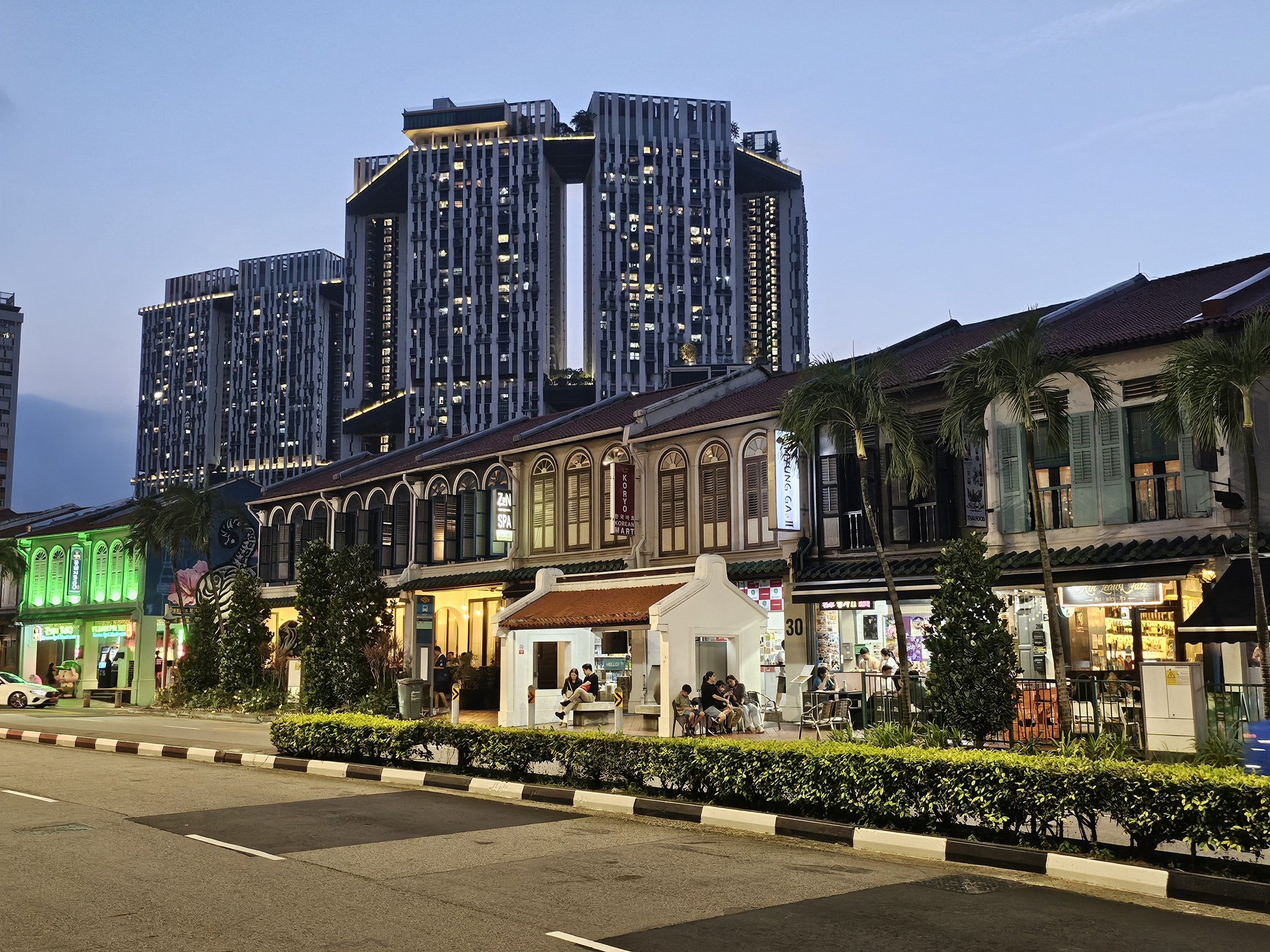 Çin Mahallesi aynı zamanda modern gökdelenlerin tam ortasında yer alan az katlı evlerden oluşan eşsiz bir bölgedir. Özellikle havadan veya Pinnacle@Duxton manzarasından bakıldığında göze çarpmaktadır.