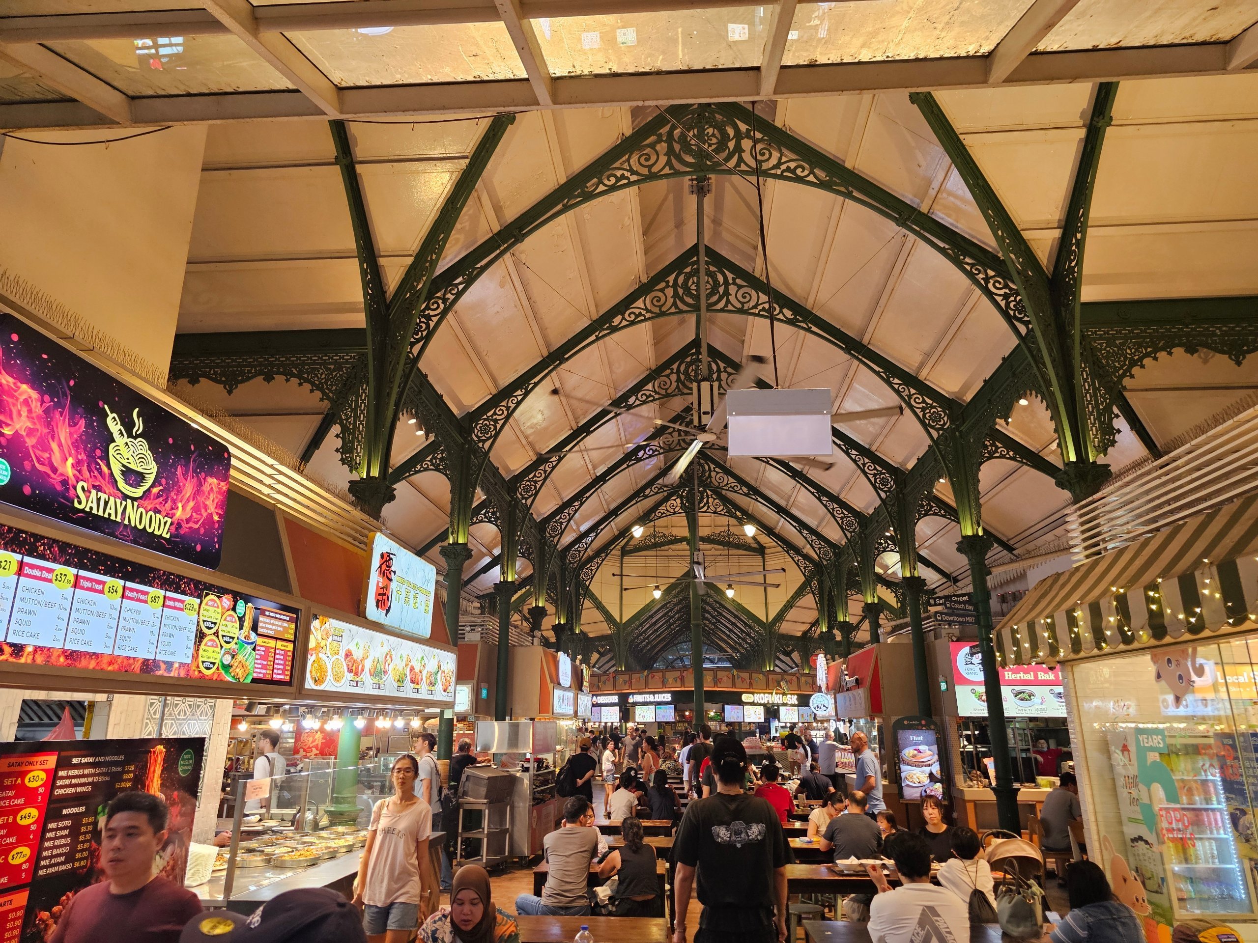 Lau Pa Sat'ı Singapur'un en fotojenik işporta merkezlerinden biri yapan da işte bu mimaridir.