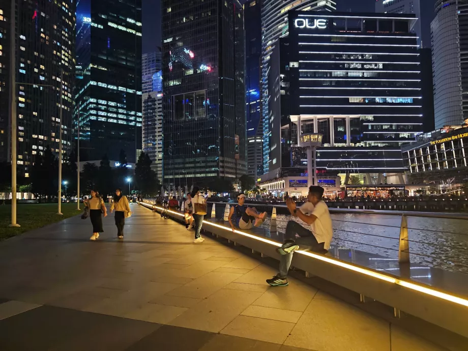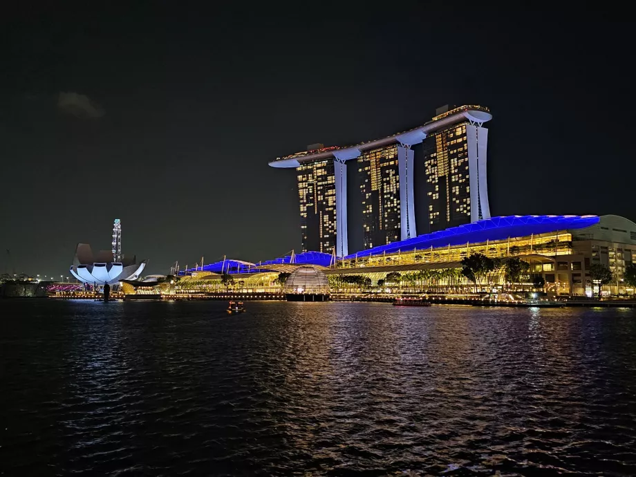 Güzelliği özellikle gökdelenlerin gece aydınlatmasında, çatısında dünyaca ünlü bir yüzme havuzu bulunan Marina Bay Sands Hotel'de, dönme dolapta ve körfez boyunca uzanan aslan heykellerinde sergilenmektedir.