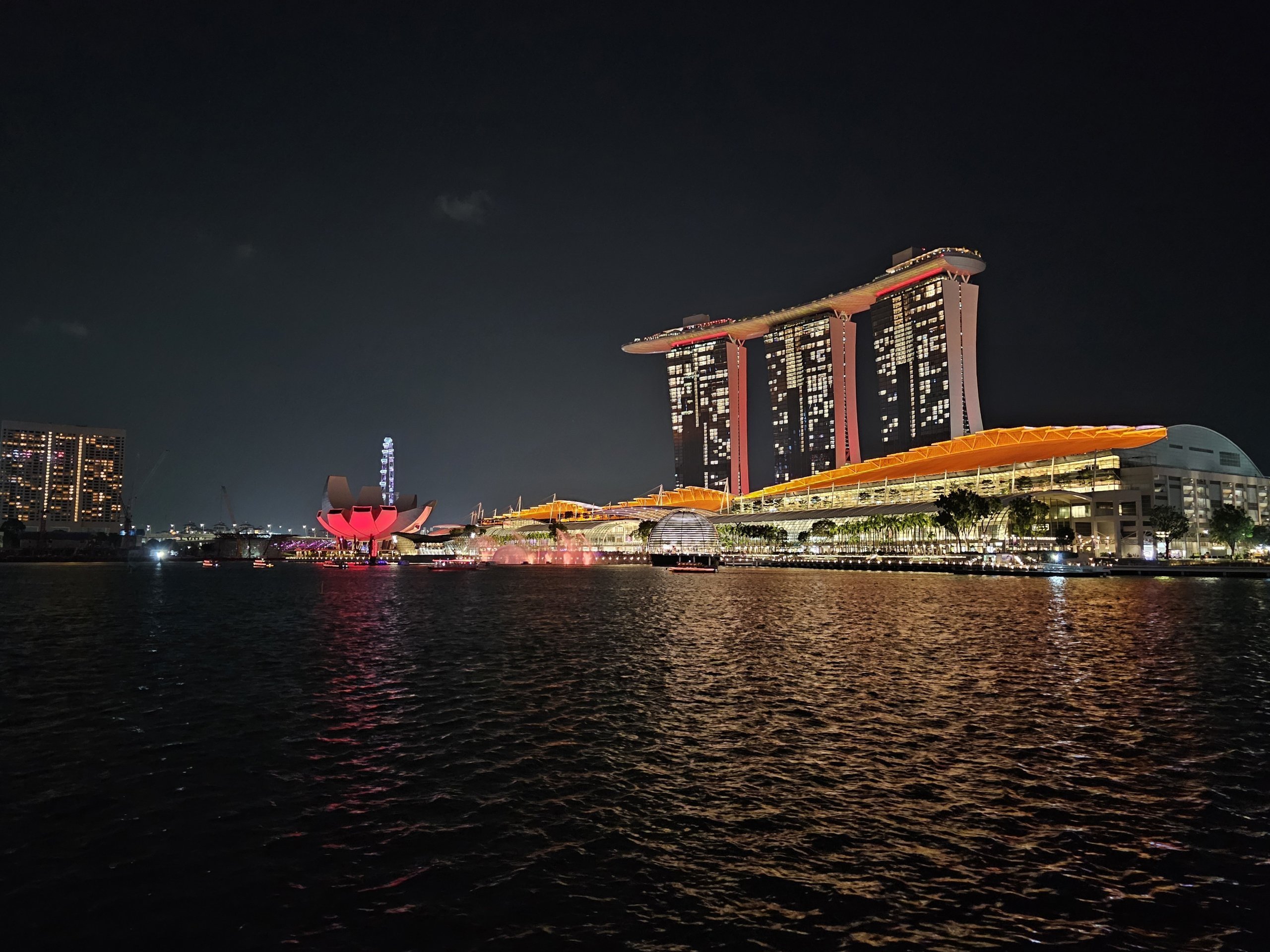 Doğrudan Marina Bay Sands'in altında olmak istemedik - en yakın gösteriye sahipsiniz, ama bence bu daha çok bir dezavantaj - genel panoramayı göremiyorsunuz.