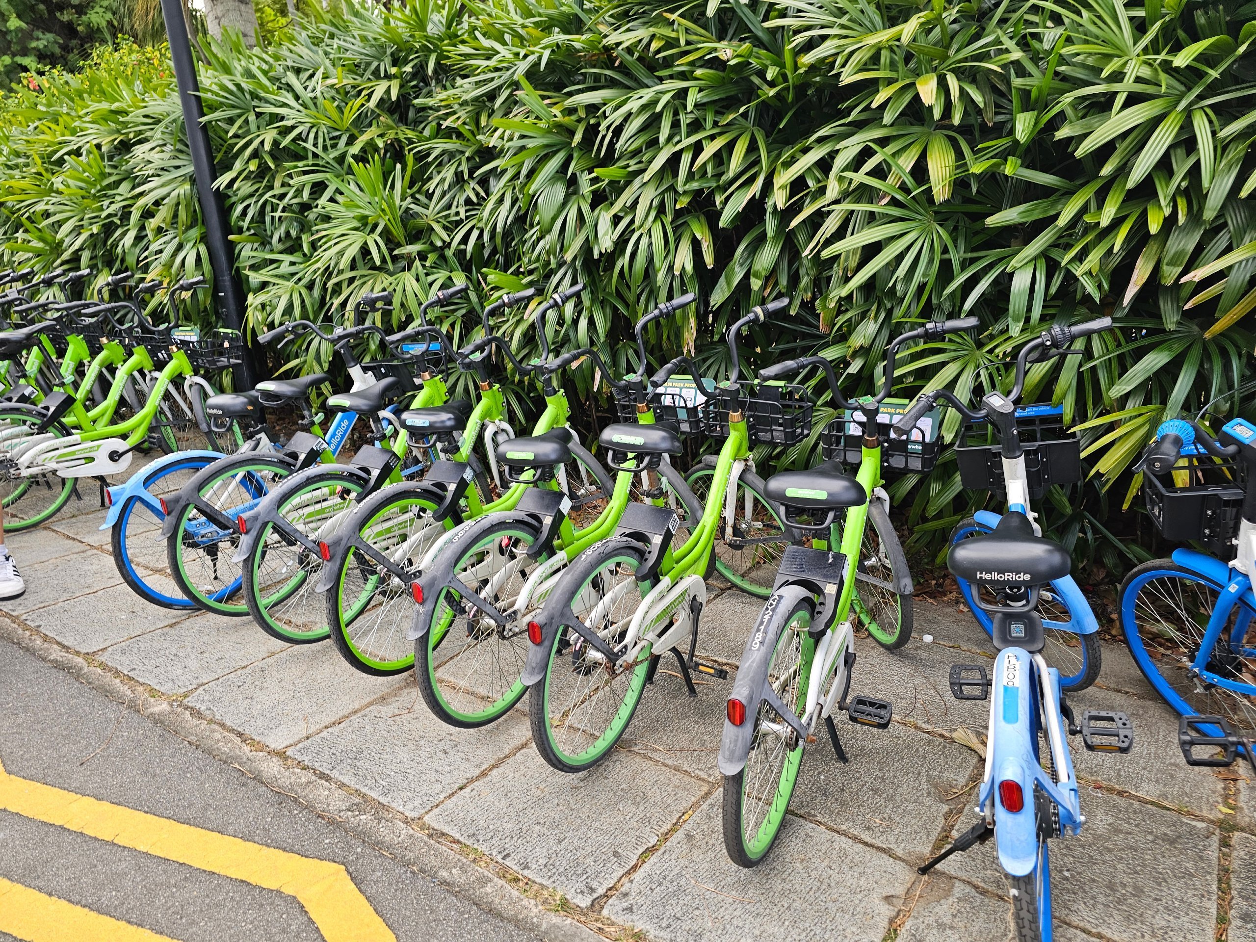 Singapur'da paylaşımlı bisikletler mevcuttur, ancak Avrupa'daki kadar yaygın değildir.