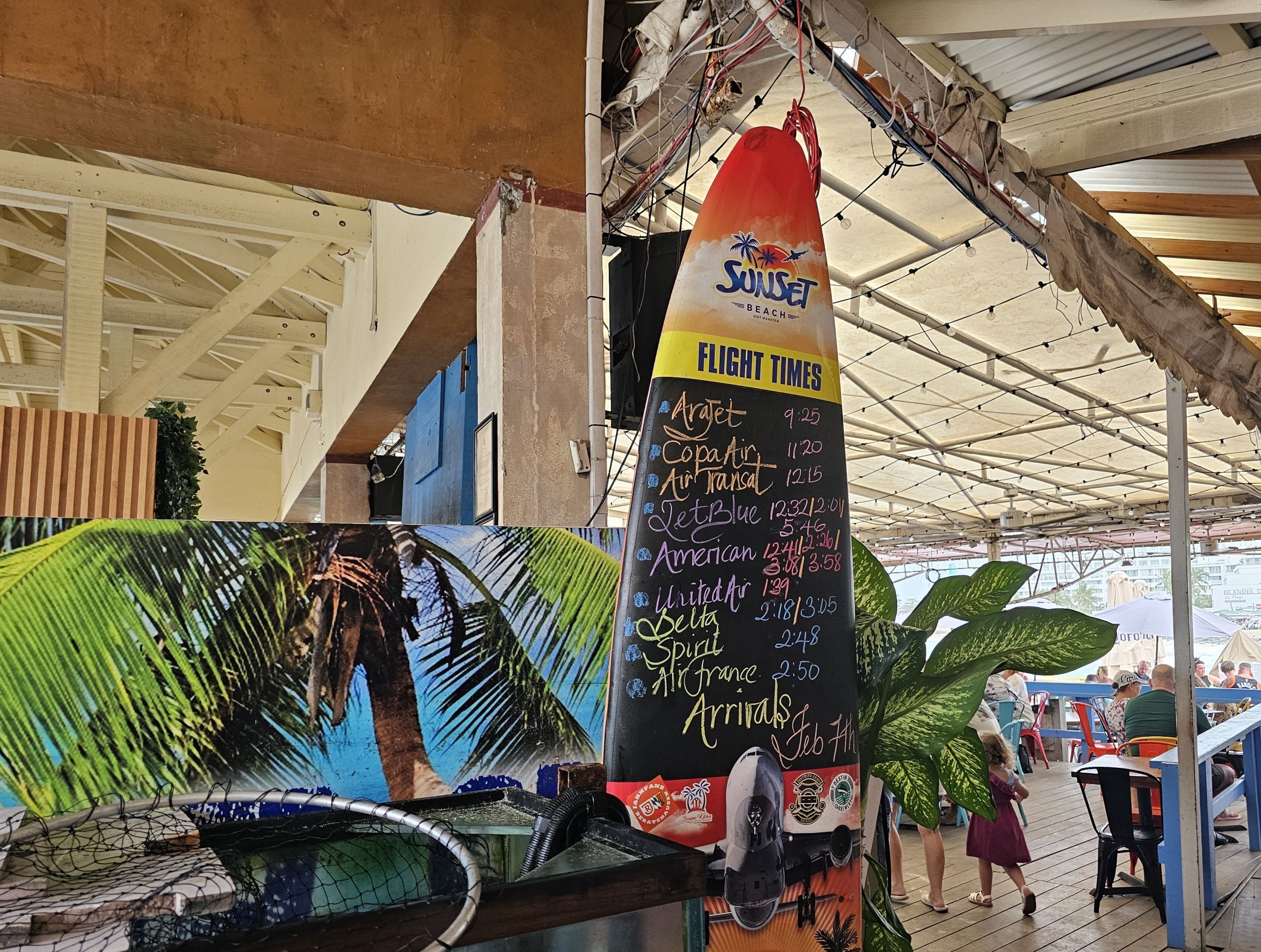 Barda, güncel geliş ve gidişlerin yanı sıra personelin her sabah büyük uçakların gelişlerini listelediği ünlü sörf tahtasının bulunduğu bir ekran bulunmaktadır.