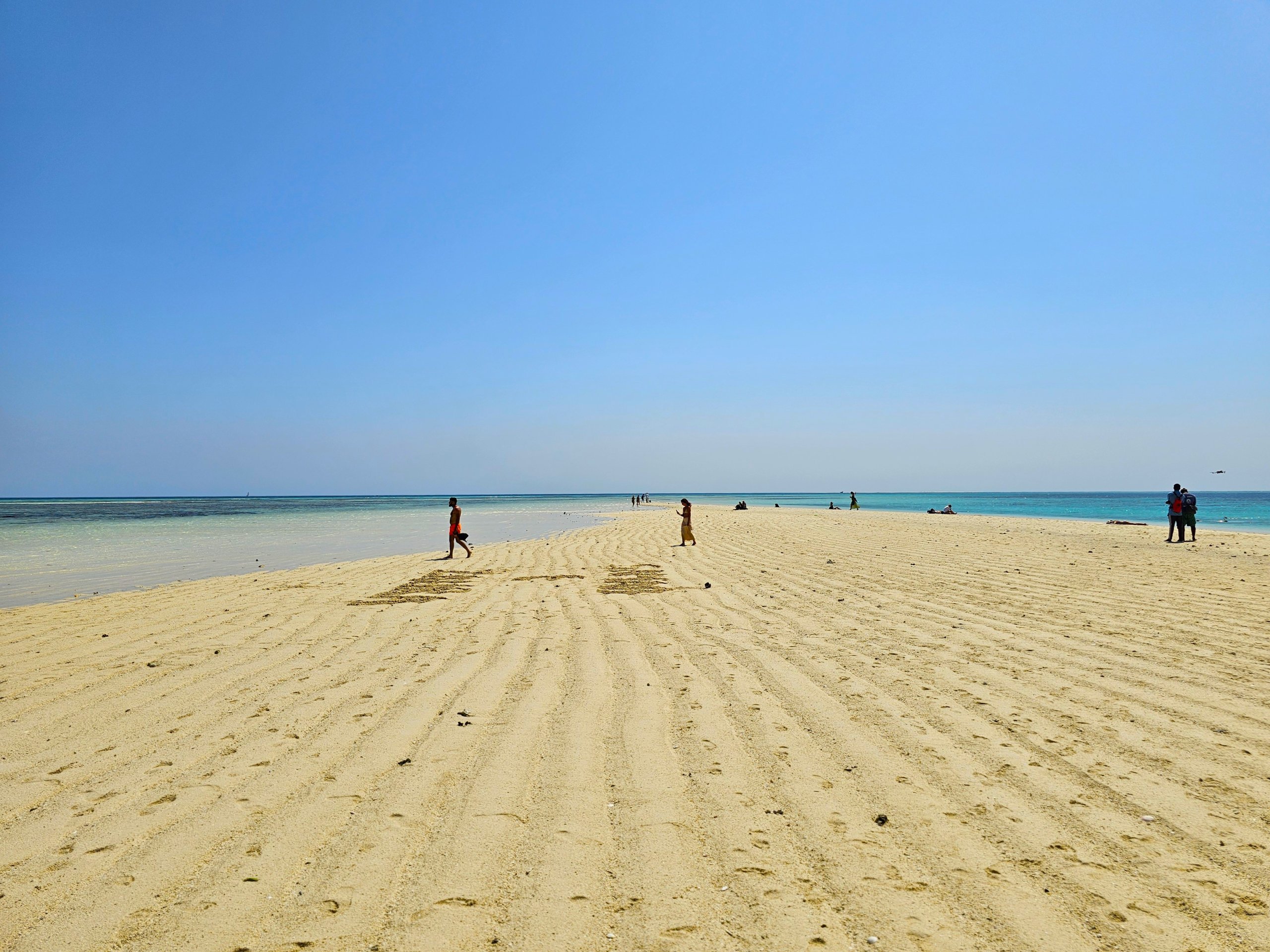 Neredeyse tüm doğu kıyısı kesintisiz bir mercan resifidir. Günde iki kez, gelgit sırasında deniz kilometrelerce çekilir ve yüzmek için tamamen elverişsiz hale gelir. Ancak bazı ziyaretçiler bundan büyük heyecan duymaktadır çünkü denizin kalıntıları, küçük balıklar, mercanlar, deniz bitkileri ve deniz kestaneleri gibi renkli deniz dünyasını gözlemleyebileceğiniz küçük havuzlar oluşturmaktadır.