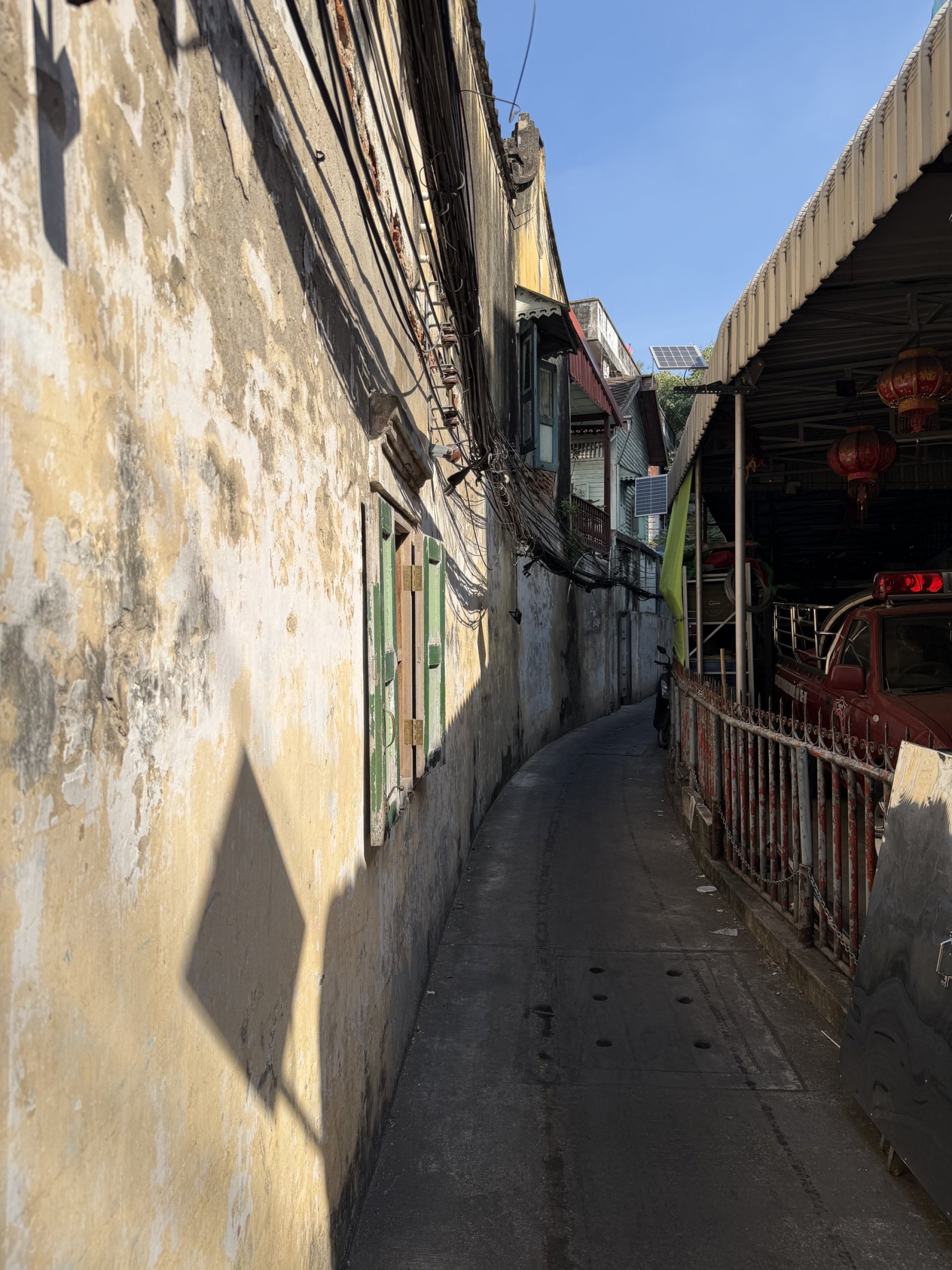 Dar sokaklar, paslanan otomobil atölyeleri, eski Çin evleri, küçük tapınaklar ve eski depolardaki kafeler, turistik bir bölgeden çok bir film setini andıran bir ortam yaratıyor.
