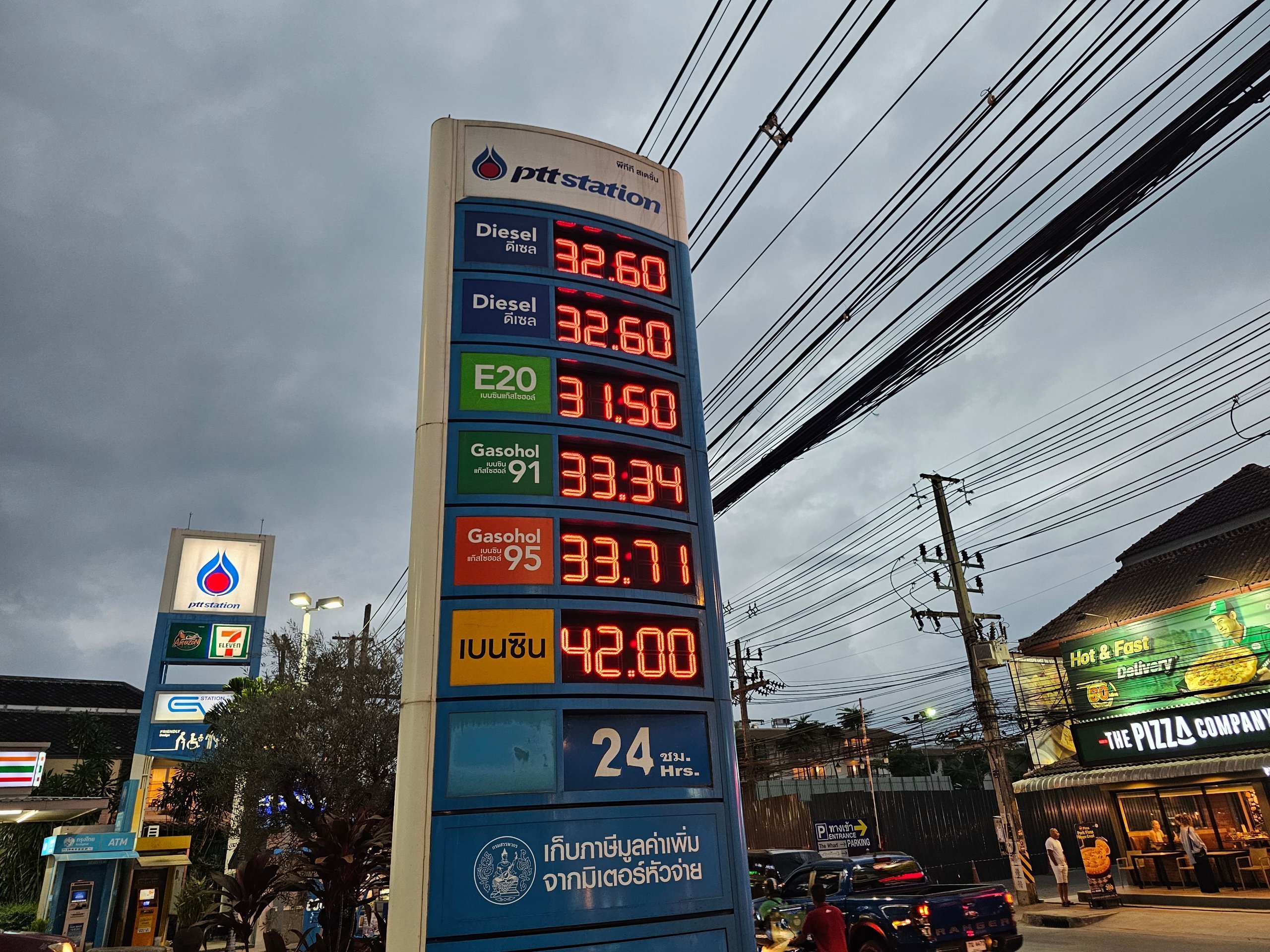 - büyük modern benzin istasyonlarında benzin - litre başına yaklaşık 32 thb ila 38 thb
