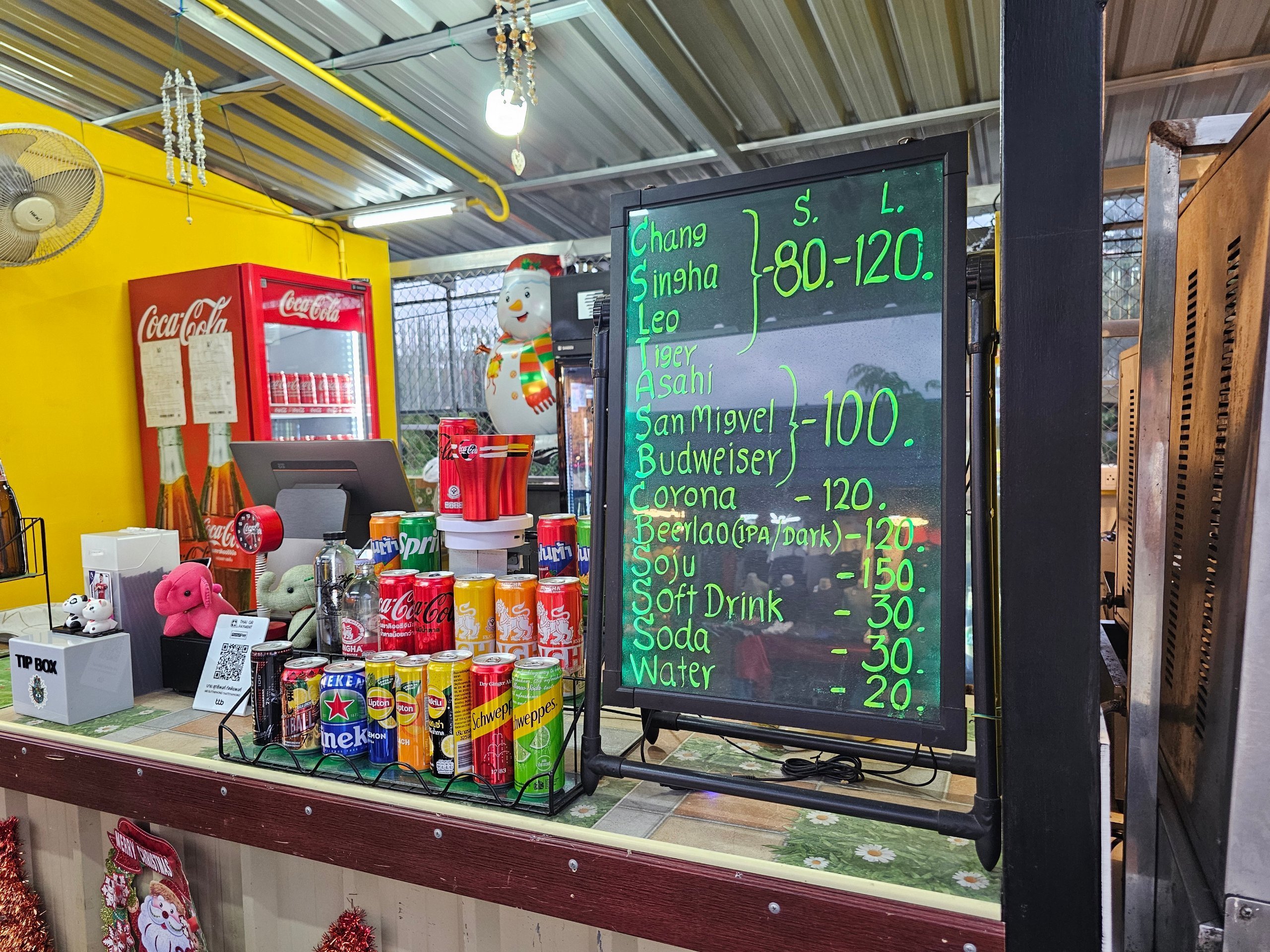 Fiyatlar çoğunlukla Lamai'deki ana cadde çevresindeki restoranlardan daha düşüktür.