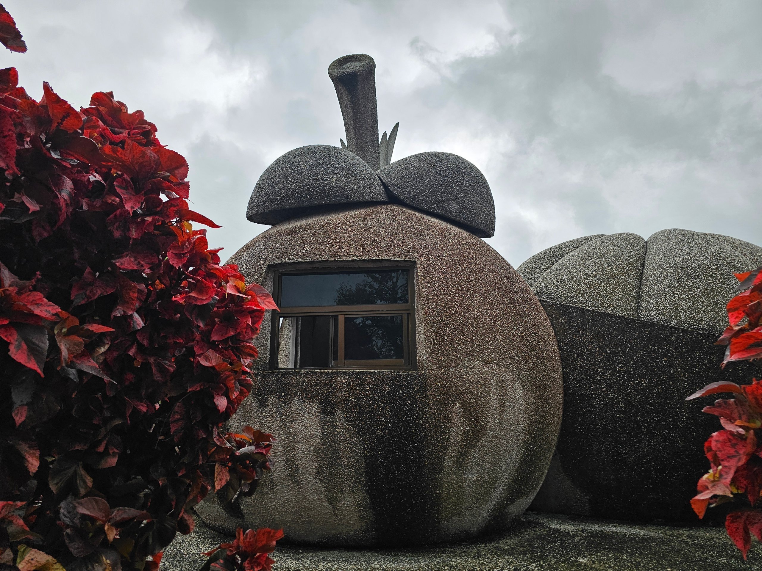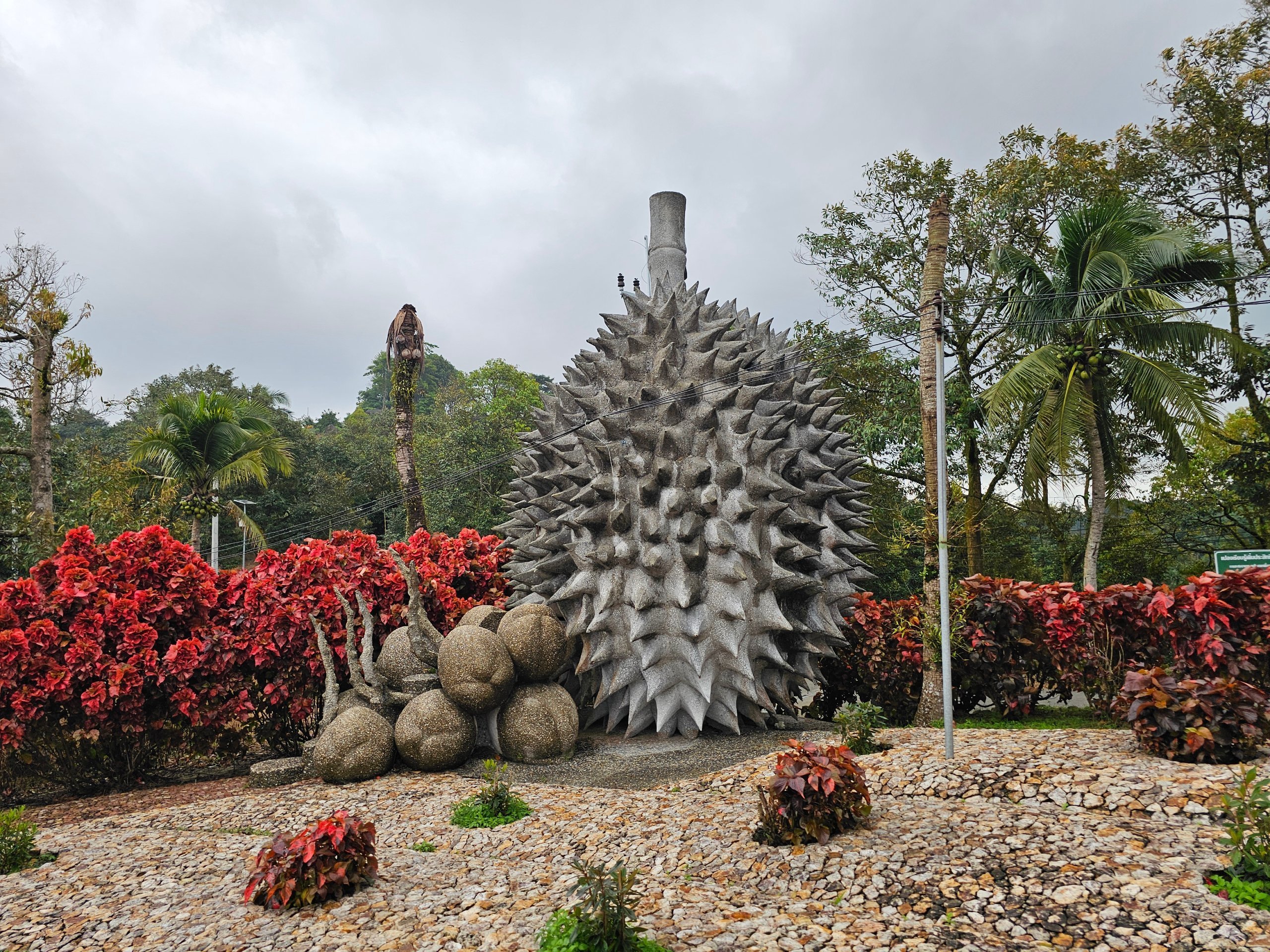 Yol kenarında, içeriği belli olmayan tuhaf bir bahçeye benzeyen taş "meyve" (durian, elma, ananas ve daha fazlası) koleksiyonu bulacaksınız.