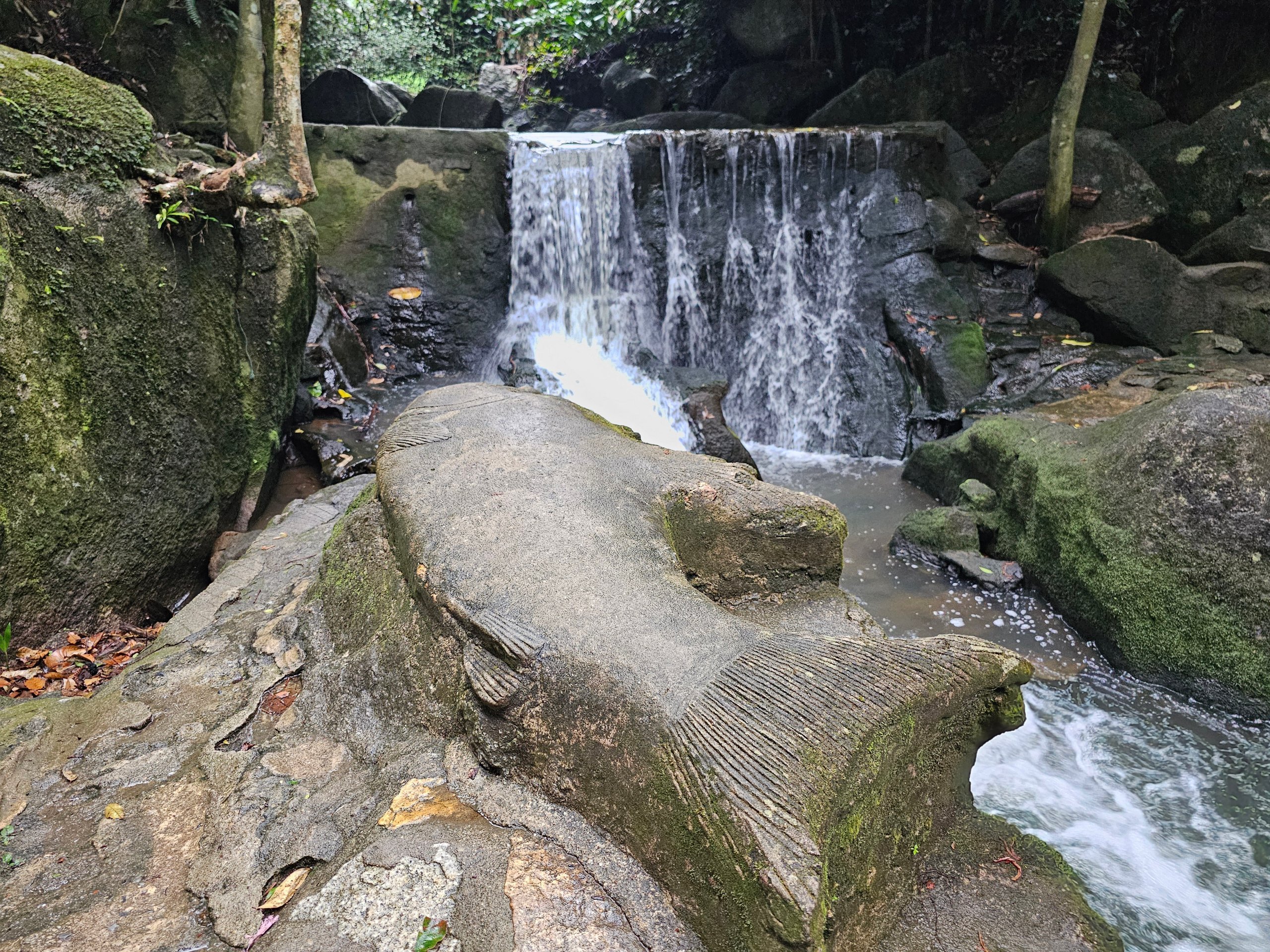 Adanın çoğu kum, barlar, diskolar ve tatil köylerinden ibaretken, burada aniden ormanın içinde, bir dere kenarında ve düzinelerce taş heykelin arasında bulursunuz kendinizi.