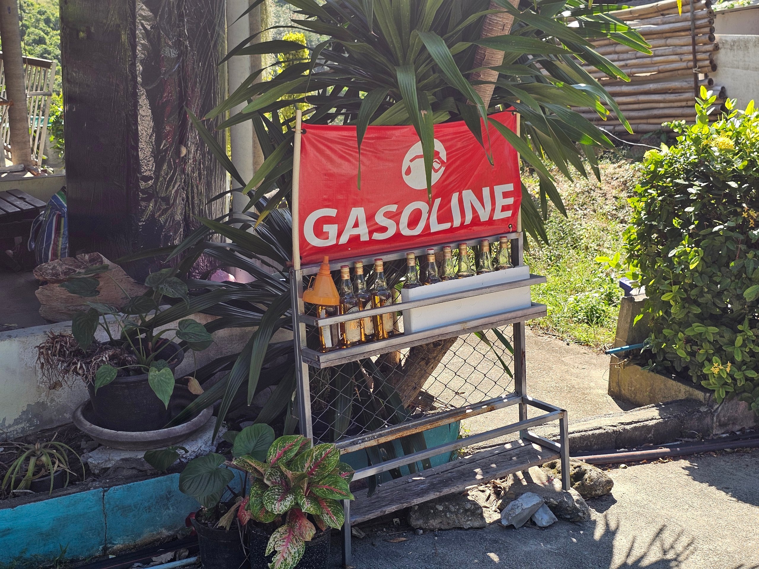 Buna ek olarak, adanın her birkaç yüz metresinde cam litrelik şişelerde doğaçlama benzin satışına rastlayacaksınız.