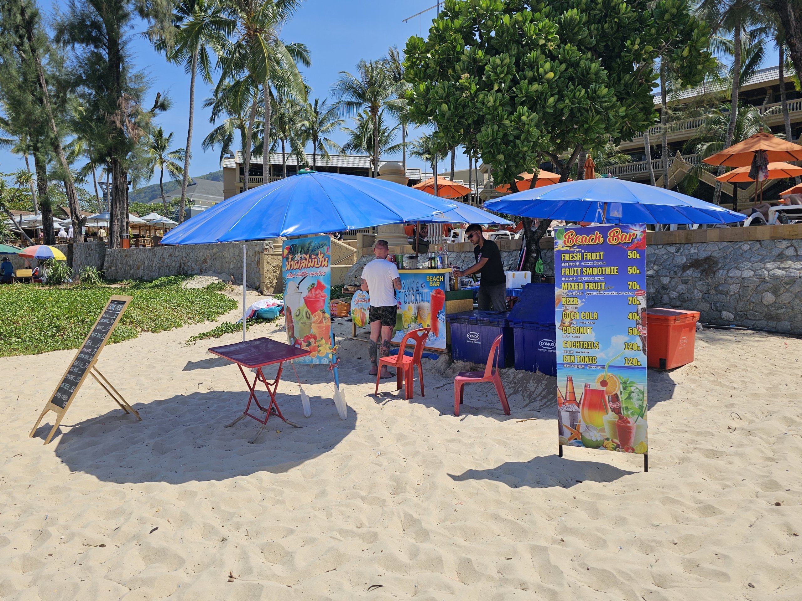 Patong, Karon veya Kata gibi en çok ziyaret edilen yerlerde, tüm gün boyunca 2 şezlong ve bir şemsiye seti için yaklaşık 300 thb ödeyeceksiniz. Daha küçük plajlarda fiyatlar 200 thb civarındadır.