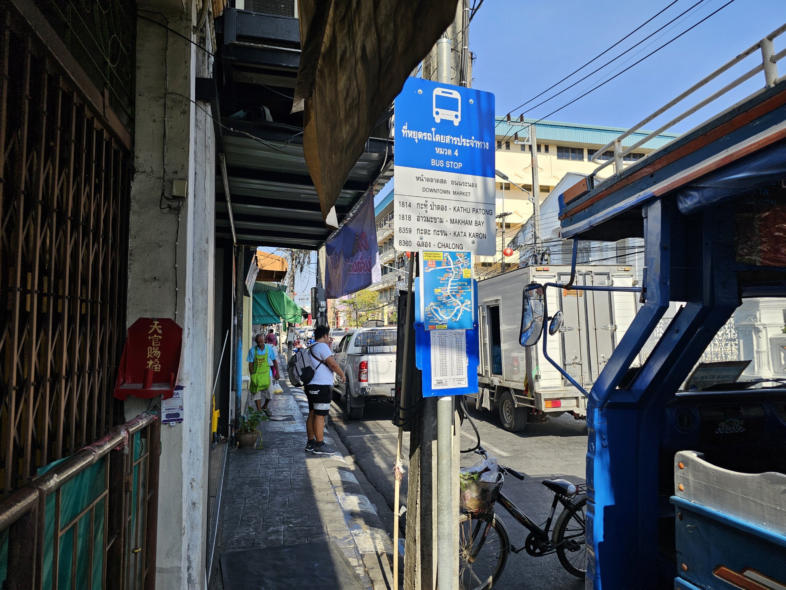 Mavi otobüsler Phuket Kasabası yönünde yaklaşık sabah 6:30'dan akşam 4:30'a kadar ve Phuket Kasabası yönünde yaklaşık sabah 7'den akşam 6'ya kadar çalışmaktadır.