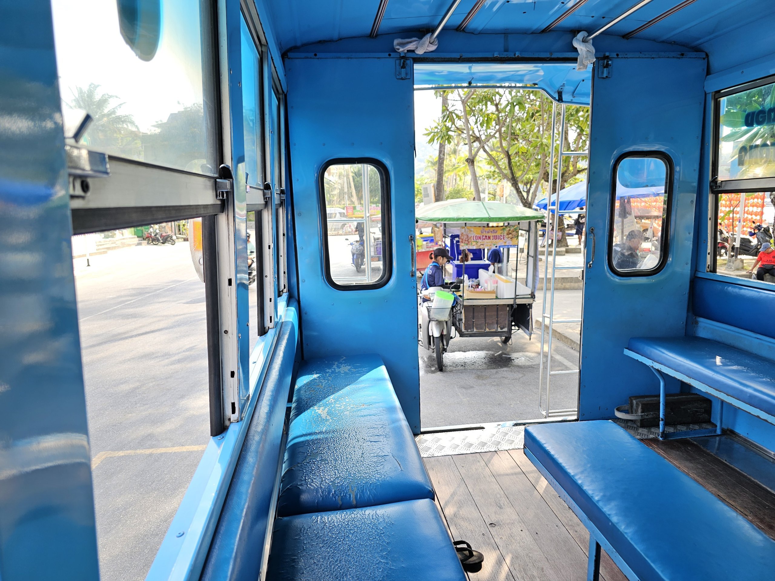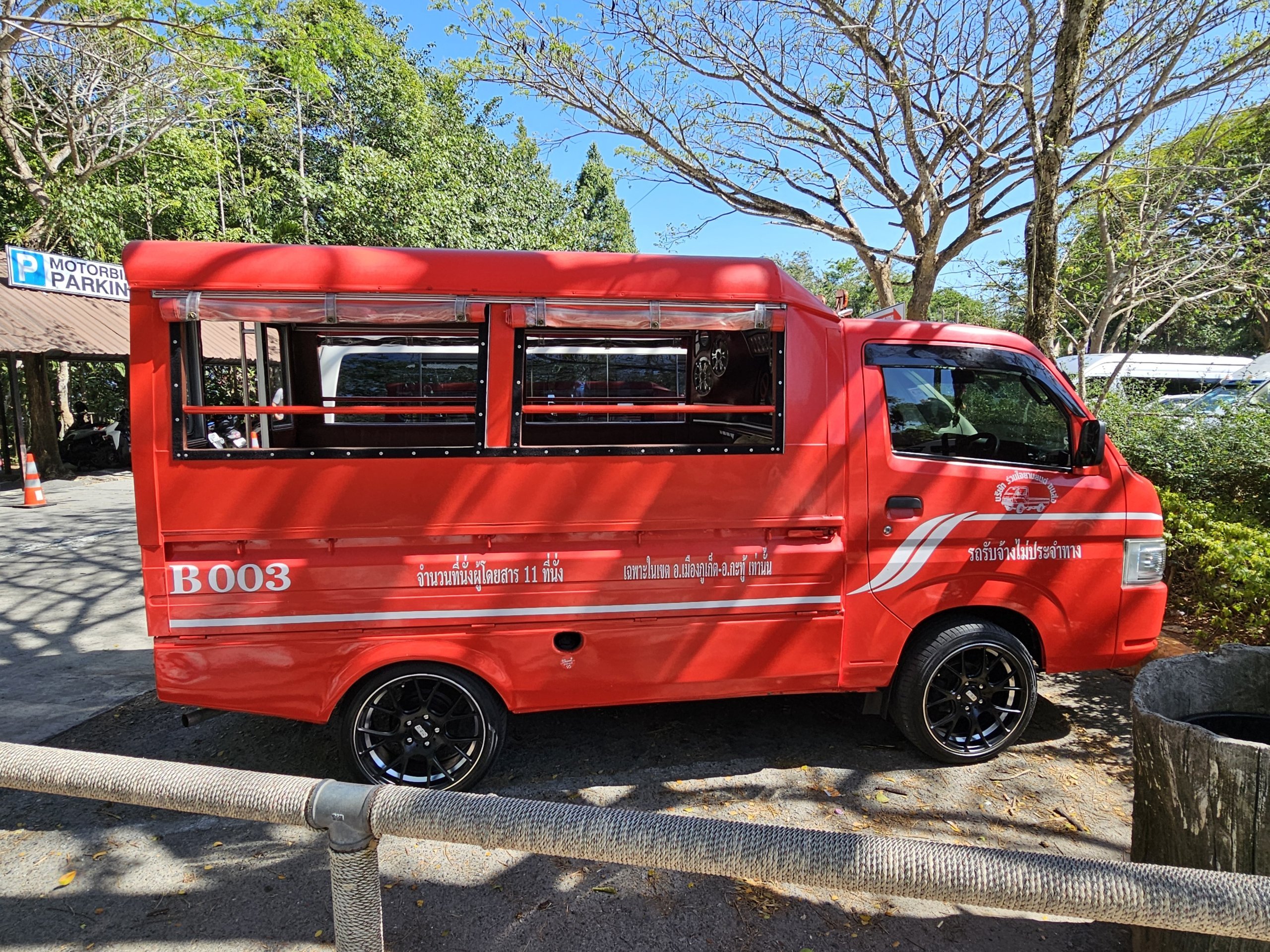 Eğer biniyorsanız, gelen songthaew'e el sallamanız yeterlidir. Can sıkıcı olan şey ise mavi otobüsün ne zaman geçeceğini bilmenizin mümkün olmamasıdır. Araçların güncel konumlarını gösteren web sitesi burada çalışmıyor.
