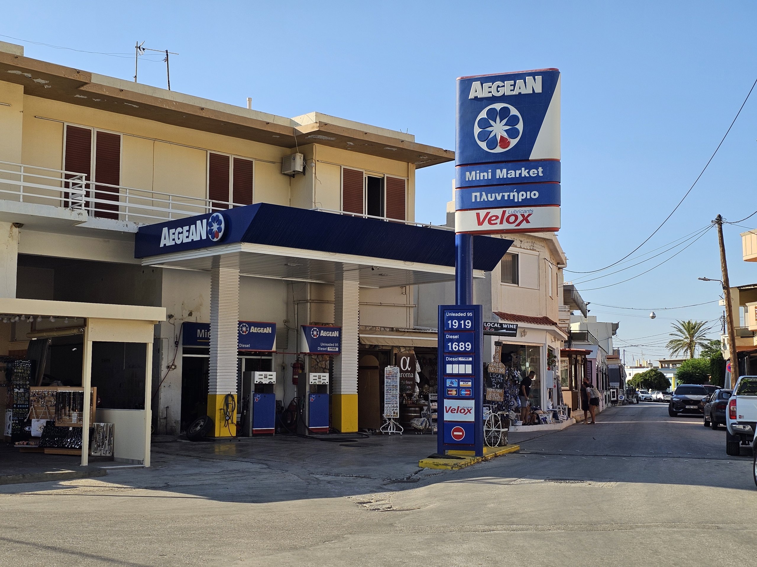 Adanın etrafındaki dairesel ana yol üzerinde çok sayıda benzin istasyonu bulacaksınız, en mantıklısı adanın daha az nüfuslu kuzey yarısında. Lindos'un güneyinde yaklaşık 3 ya da 4 benzin istasyonuna rastlayacaksınız.