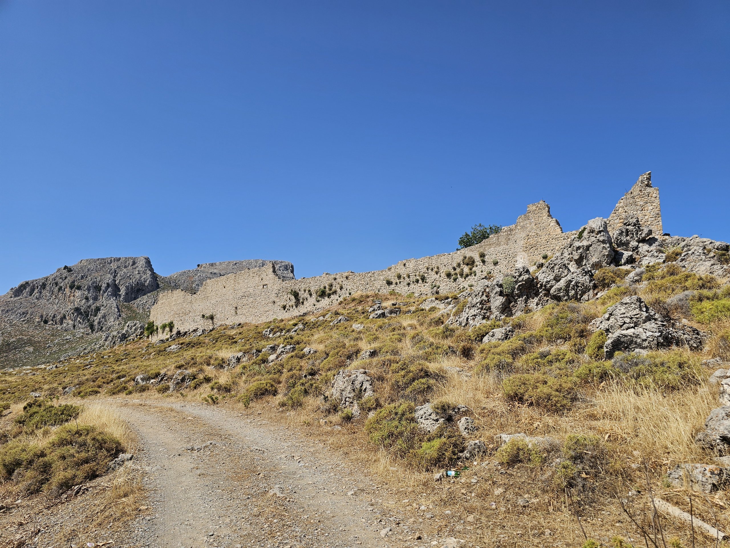 Kale, iç kesimlerdeki Archangelos'u sahilden ayıran küçük bir tepenin üzerine inşa edilmiştir, bu nedenle uzaktaki denizin stratejik bir manzarasını da sunmaktadır.
