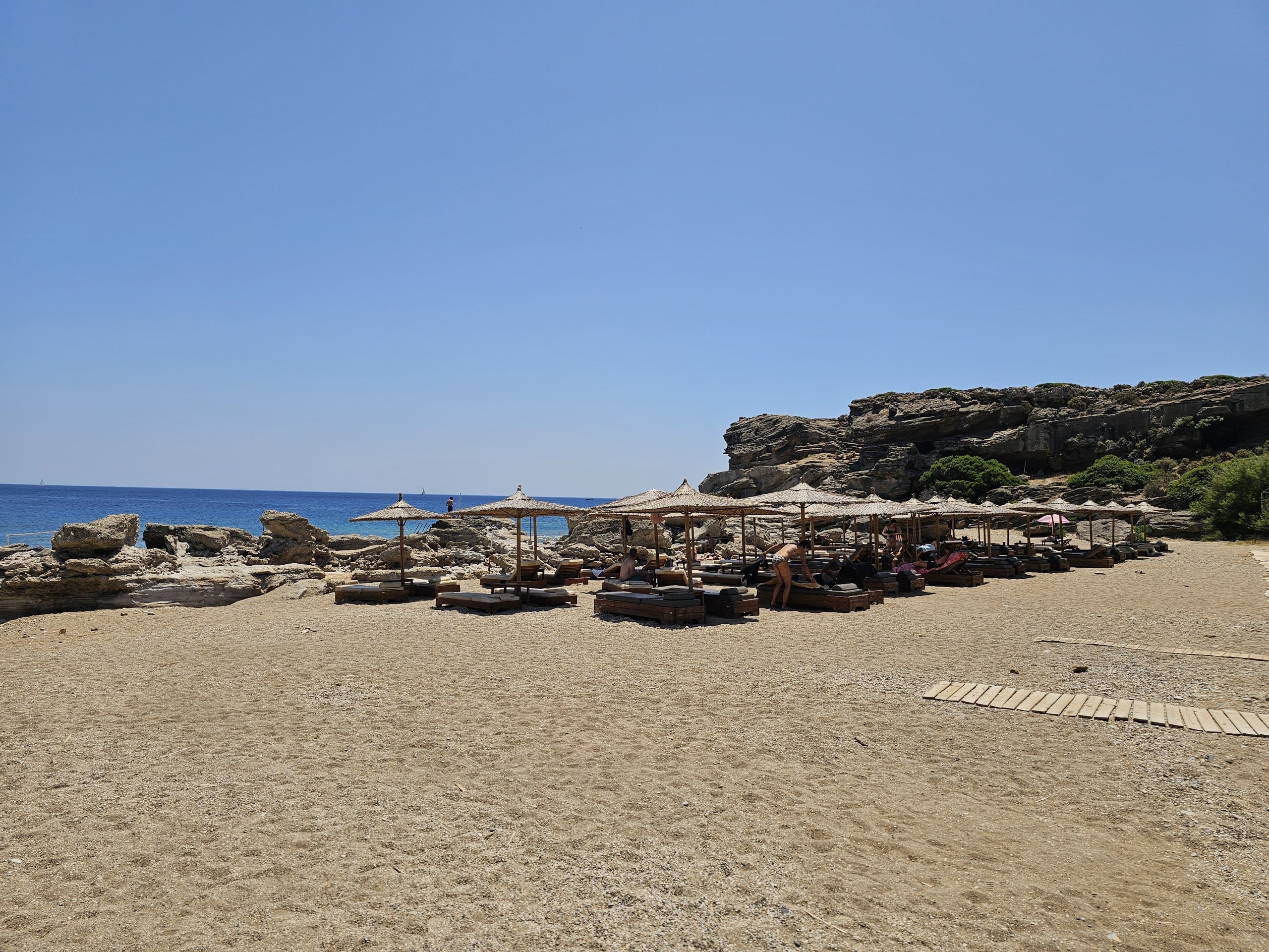 Geniş bir ücretsiz park alanı bulacaksınız, ayrıca plajlar Rodos ve Lindos kasabalarını birbirine bağlayan ana yoldan sadece birkaç metre uzaklıktadır.