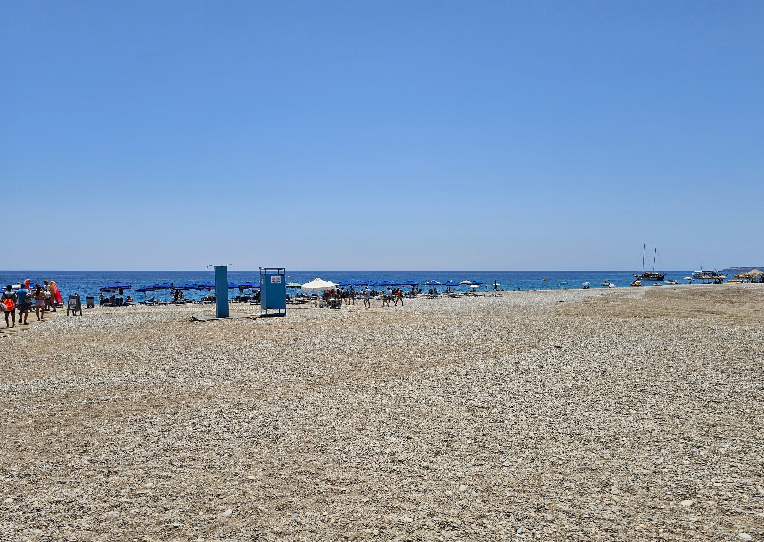 Birkaç atıştırmalık tezgahı, içecek, yiyecek ve plaj ekipmanı satan dükkanlar ve tabii ki kiralık şezlong ve şemsiyeler vardır (1 günlük 2 şezlong seti için yaklaşık 12 avro).
